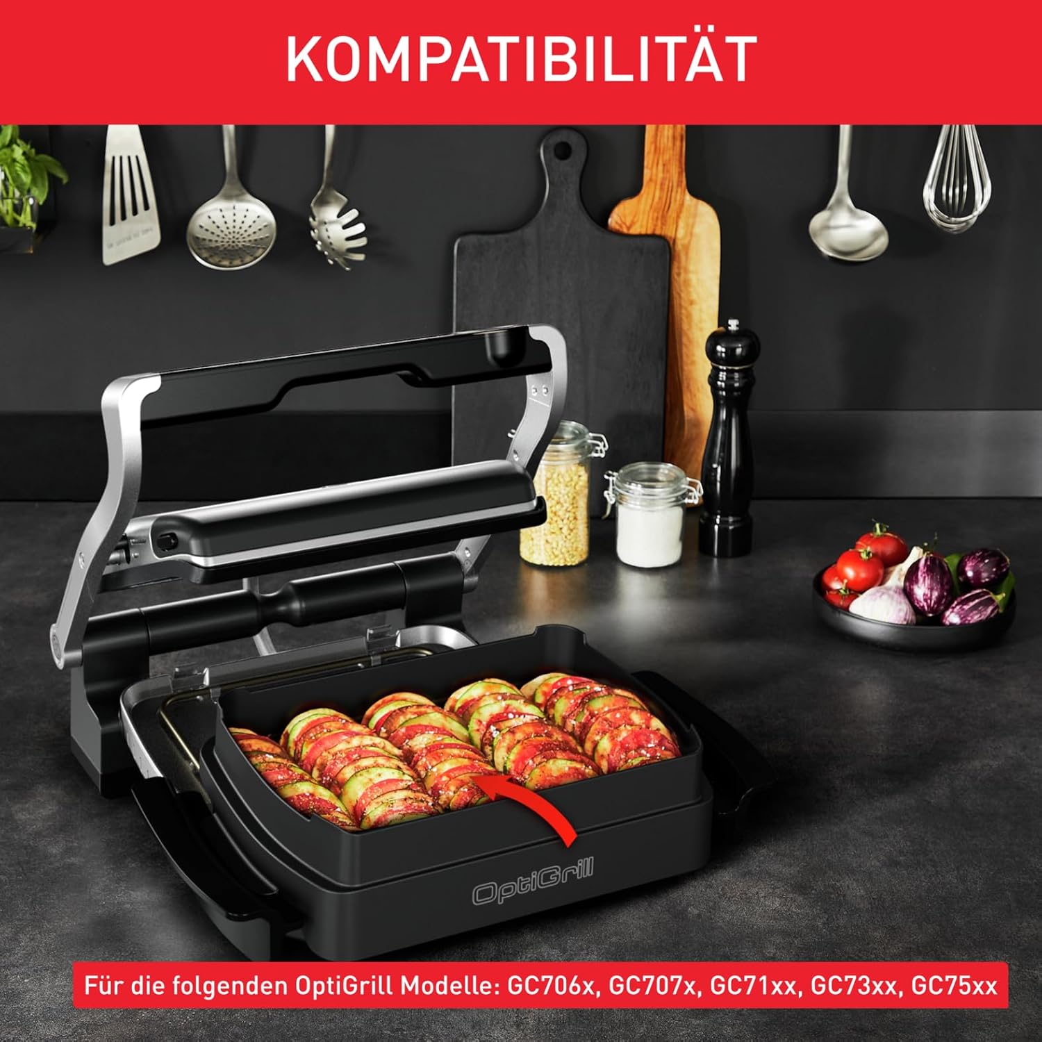 TEFAL OptiGrill Snacking & Baking Backschale XA725870 | antihaftbeschichtet | wärmeisolierte Griffe | spülmaschinengeeignet | für Aufläufe, Brot, Süßes, etc | OptiGrill + und OptiGrill Elite | Schwarz | قیمت یورویی 48.99€
