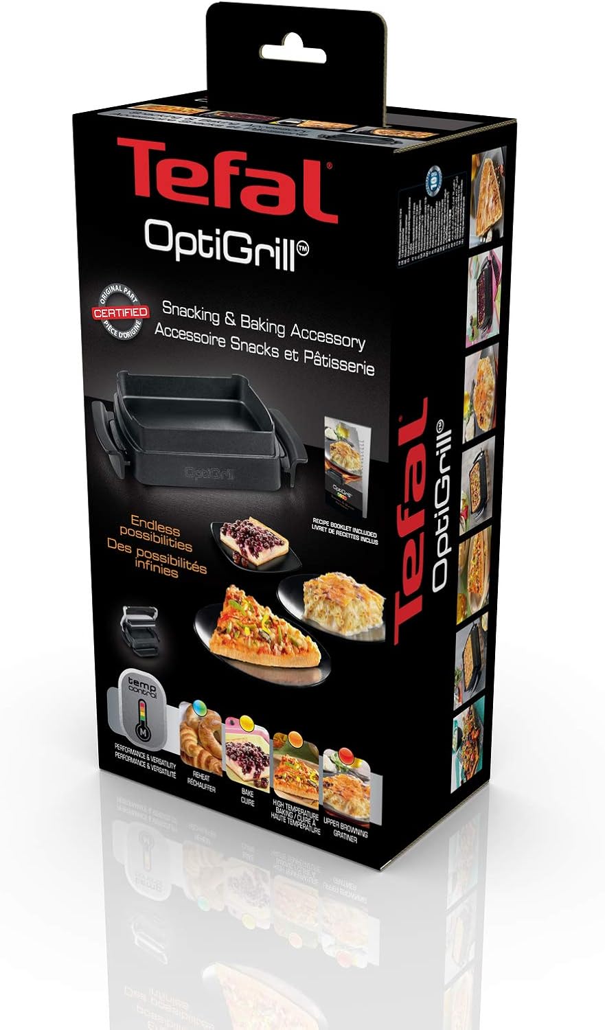 FÜR NOCH MEHR OPTIONEN MIT DEM OPTIGRILL: Dieses Back-Zubehör verwandelt den Tefal OptiGrill dank den manuellen Temperaturstufen in einen Backofen, um süße und salzige Speisen zuzubereiten (z.B. Pizza, Aufläufe, Gratins, Lasagne, Blechkuchen); Im Lieferumfang ist ein Heft mit Rezeptideen enthalten BENUTZERFREUNDLICH: Die hitzebeständigen Griffe ermöglichen eine sichere Handhabung EINFACHE REINIGUNG Die Antihaftbeschichtung der Backschale sorgt für eine mühelose Reinigung; Da die Beschichtung durch scharfe, metallische Küchenutensilien sowie aggressive Tabs bei der Reinigung in der Spülmaschine beschädigt werden kann, wird eine Reinigung mit der Hand sowie die Verwendung von Küchenutensilien aus Holz, Kunststoff oder Silikon empfohlen GROSSZÜGIGES FASSUNGSVERMÖGEN: Die Backschale ist 28,5 cm x 18,9 cm groß und bietet Platz für Mahlzeiten für bis zu vier Personen KOMPATIBILITÄT: Diese Backschale kann mit den Tefal OptiGrill Modellen aus den Reihen GC706x, GC707x GC71xx, GC73xx und GC75xx verwendet werden | قیمت یورویی : 48.99€