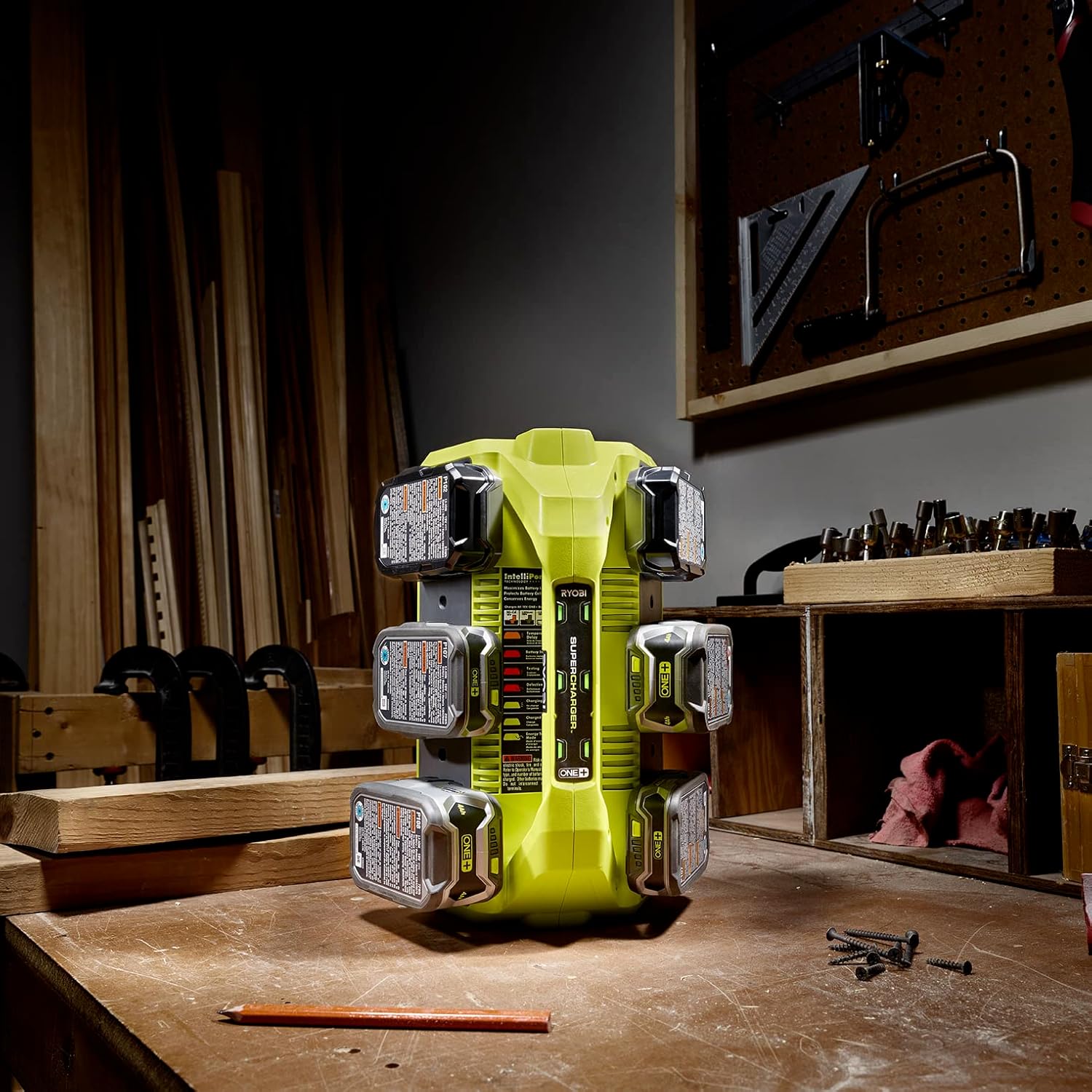 RYOBI 18 V ONE+ Akku-Ladegerät RC18627 (platzsparende Ladestation für bis zu 6 Akku, für ONE+ 18 V Lithium Akkus, Ladestrom von 2,7 A, ohne Akkus) | قیمت یورویی 138€