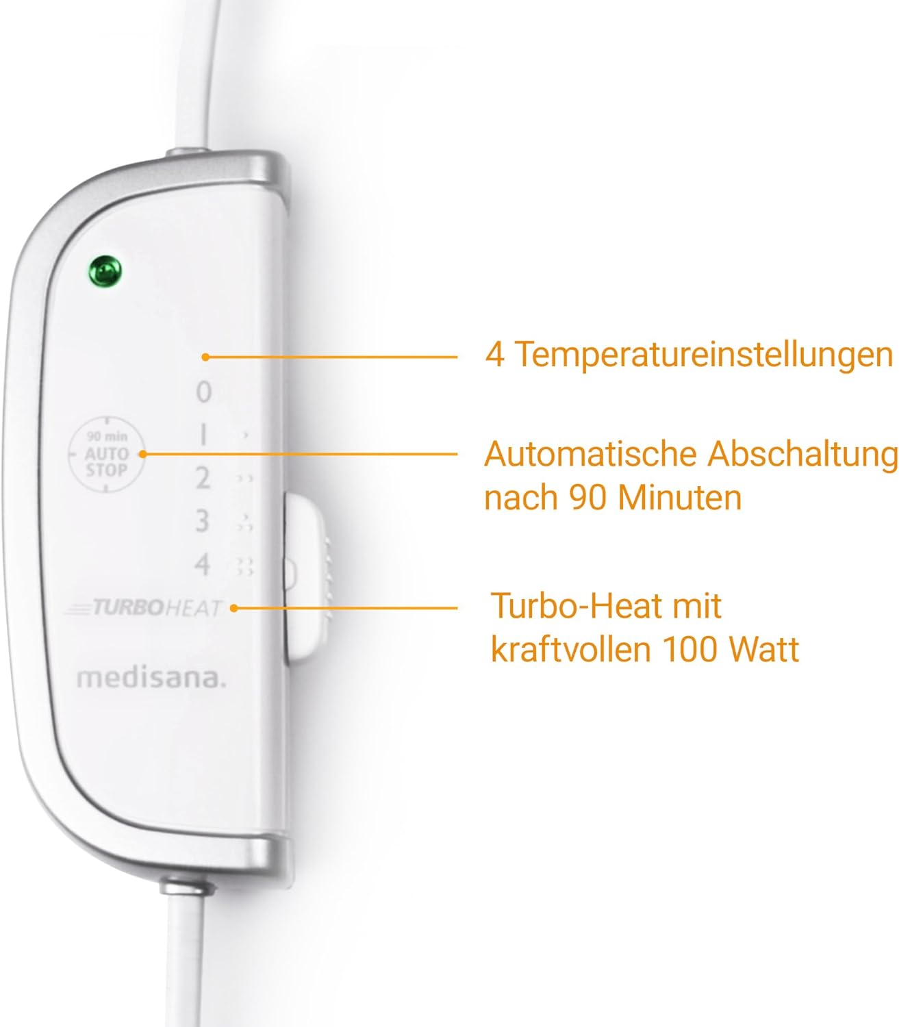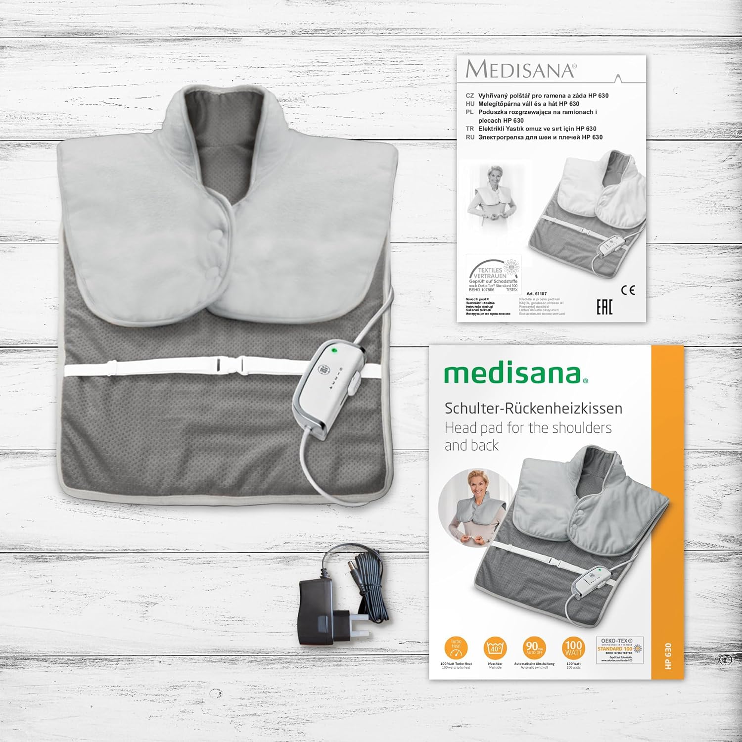 شنل حرارتی برقی مدیسانا مدل HP 630 برای گردن، شانهها و پشت، با 4 حالت تنظیم دما، محافظت در برابر گرمای بیش از حد، خاموش شدن خودکار، قابل شستشو برای شانهها و پشت