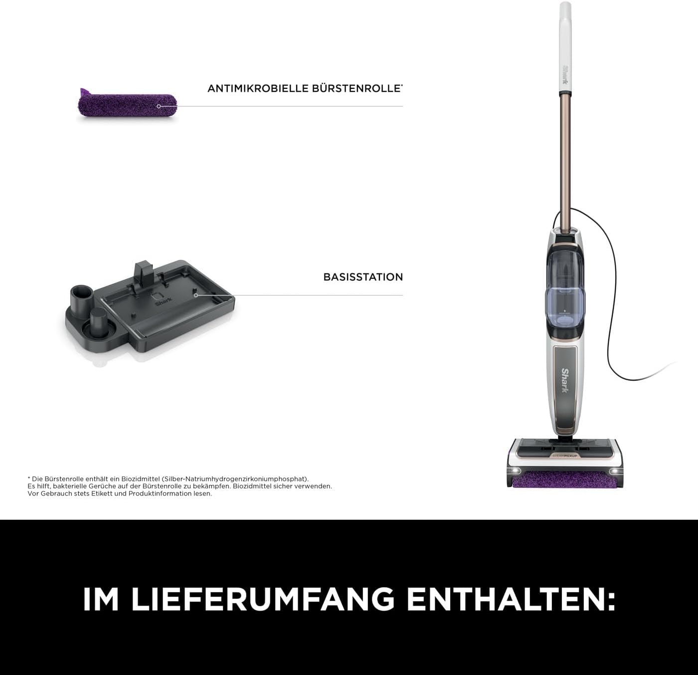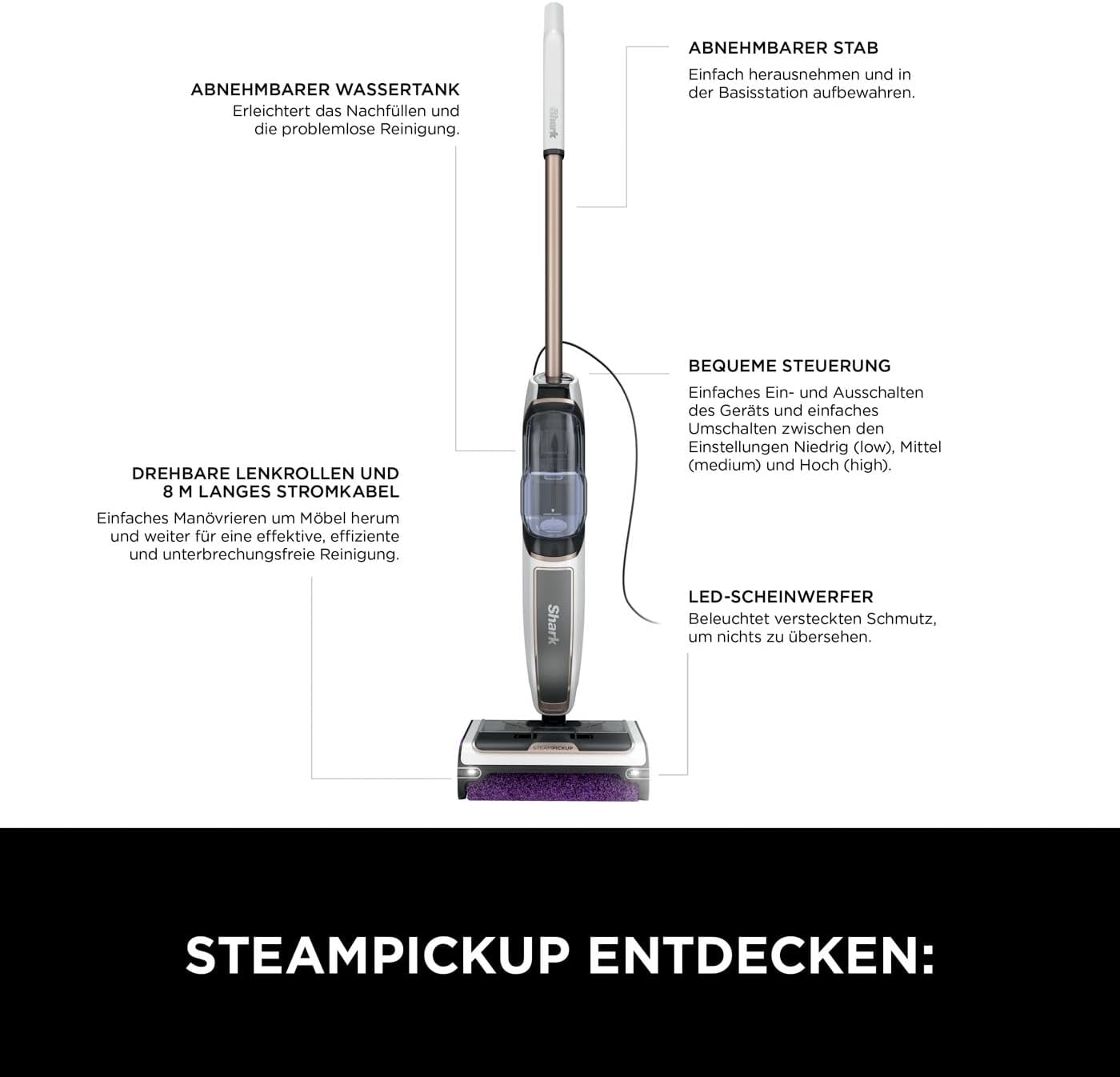 Shark SteamPickUp 3-in-1-Dampfreiniger, harte Böden, chemiefrei, reinigt nassen & trockenen Schmutz, 420ml Fassungsvermögen, Extra-Bürstenrolle, Aufbewahrungsstation, Bürstenrollenhalter, Weiß SD200EU | قیمت یورویی 167.5€