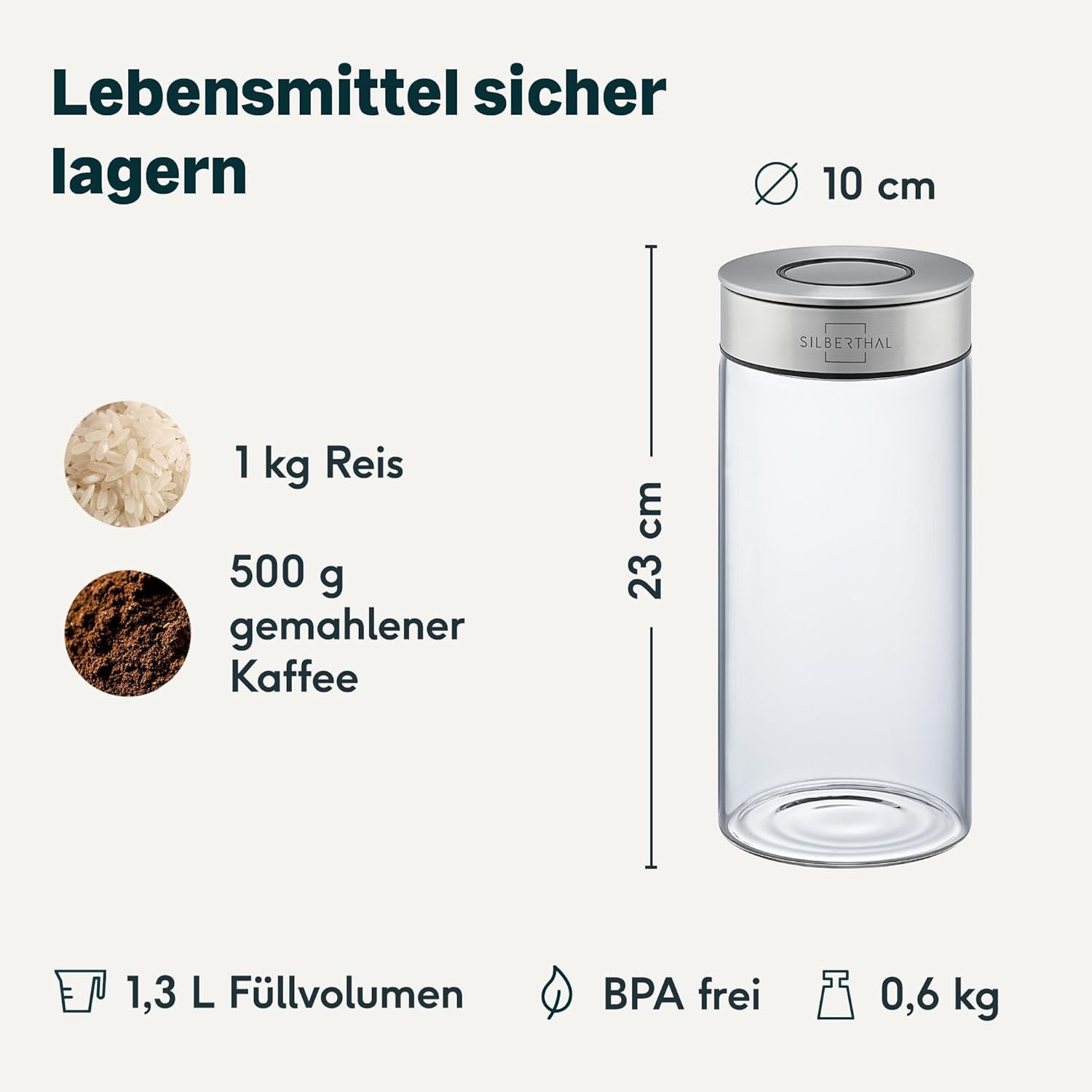 SILBERTHAL Vorratsdosen Glas mit Deckel 1300 ml - Vorratsgläser mottensicher für luftdichte & auslaufsichere Aufbewahrung in der Küche | قیمت یورویی 17.95€