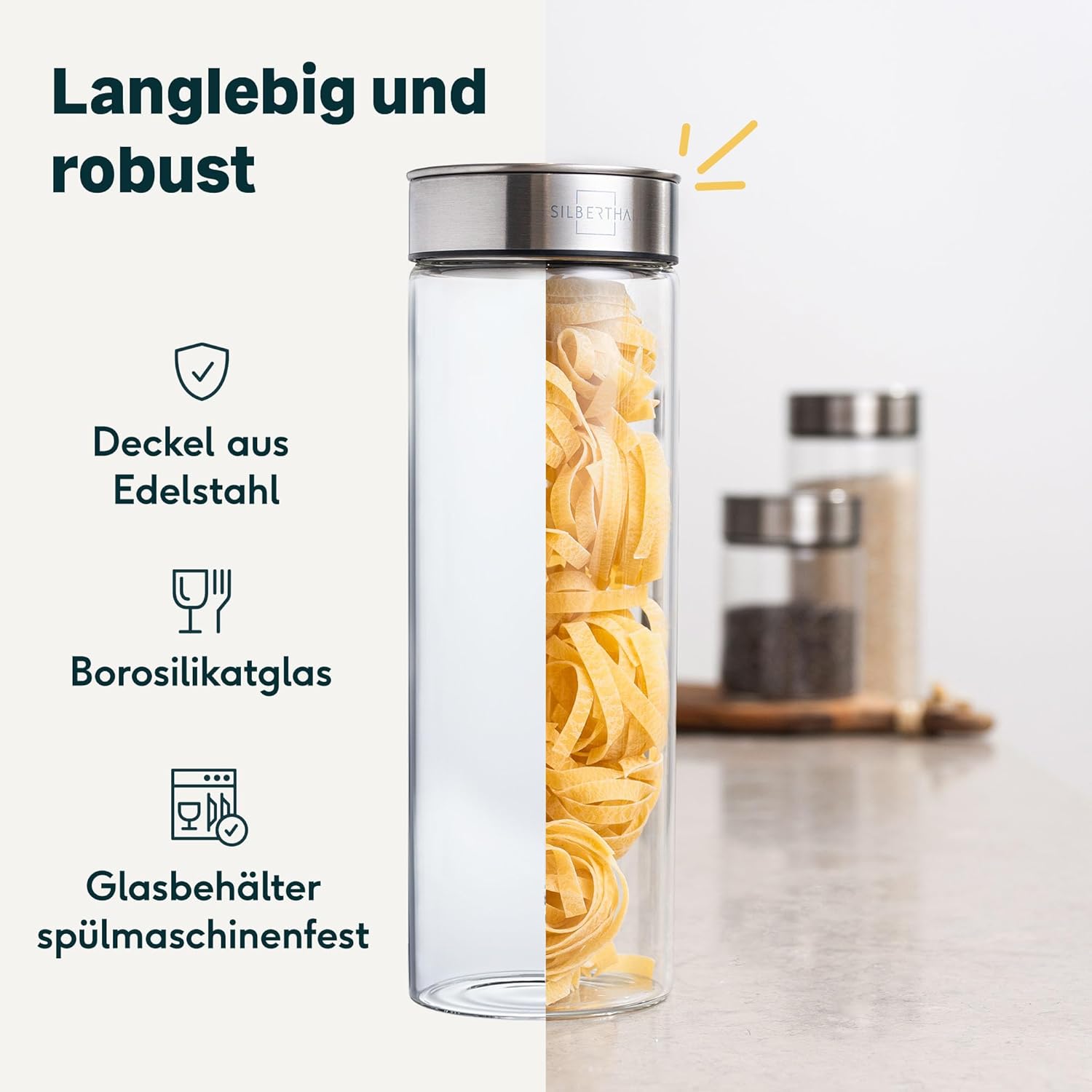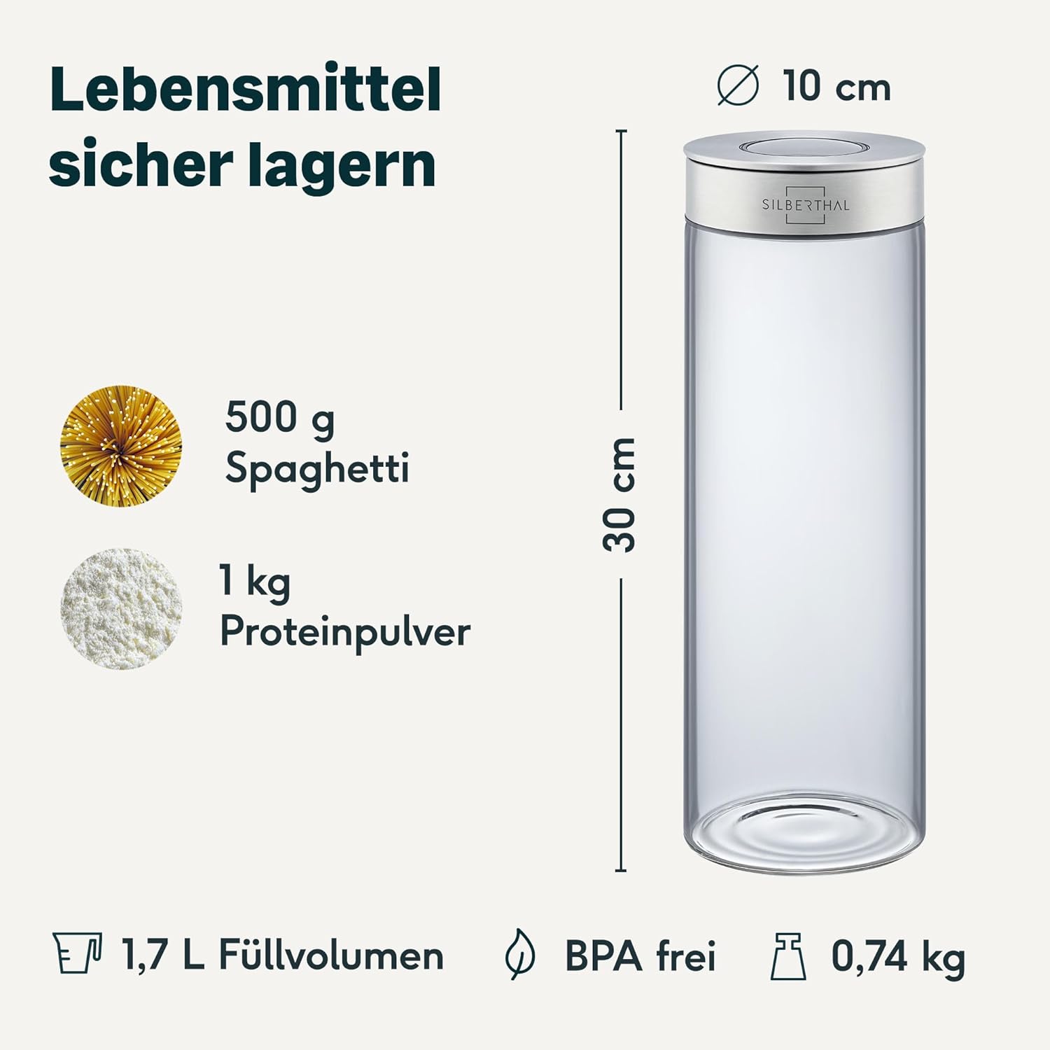SILBERTHAL Vorratsdosen Glas mit Deckel 1700 ml - Vorratsgläser mottensicher für luftdichte & auslaufsichere Aufbewahrung in der Küche | قیمت یورویی 19.95€