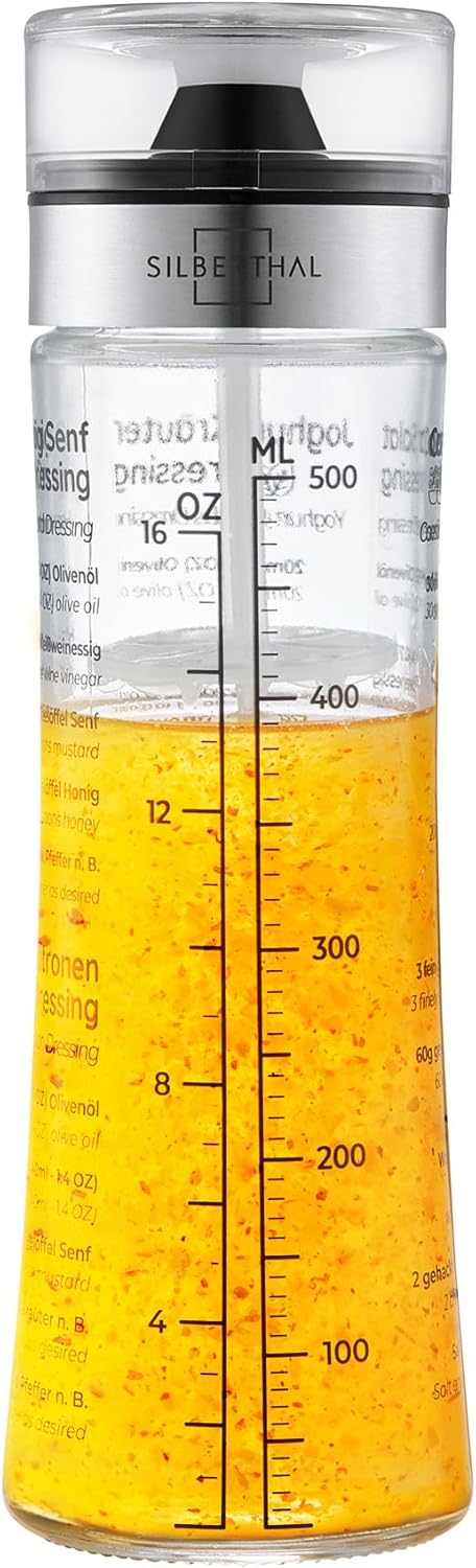SILBERTHAL Dressingshaker aus Glas mit Rezepten – 500 ml – Spülmaschinenfest - Neuer Deckel & Neue Rezepte | قیمت یورویی 22.95€