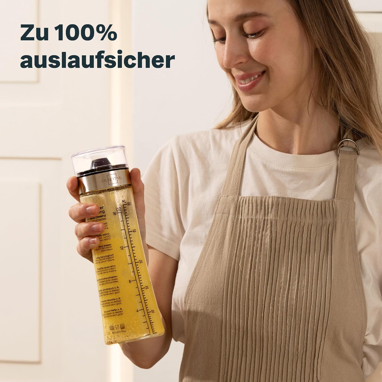 SILBERTHAL Dressingshaker aus Glas mit Rezepten – 500 ml – Spülmaschinenfest - Neuer Deckel & Neue Rezepte