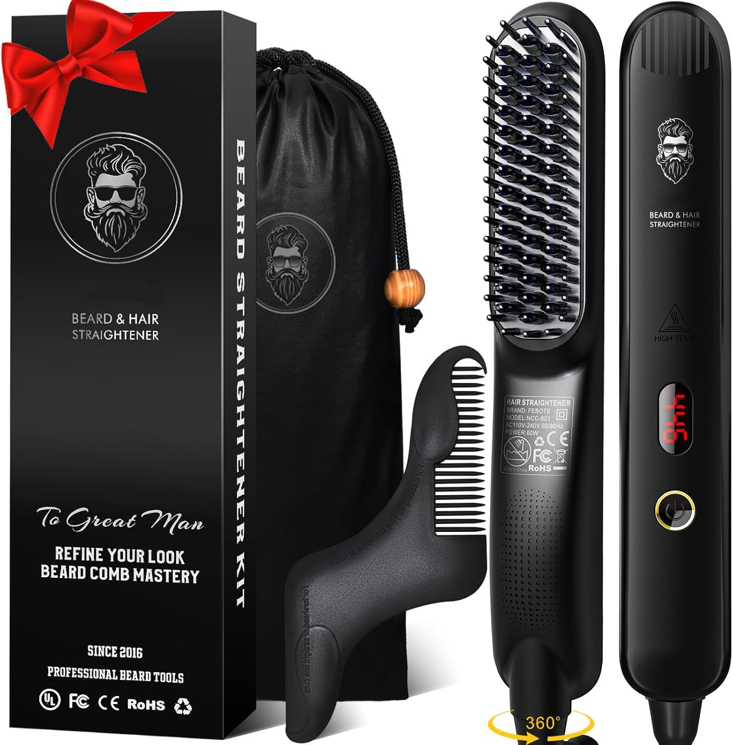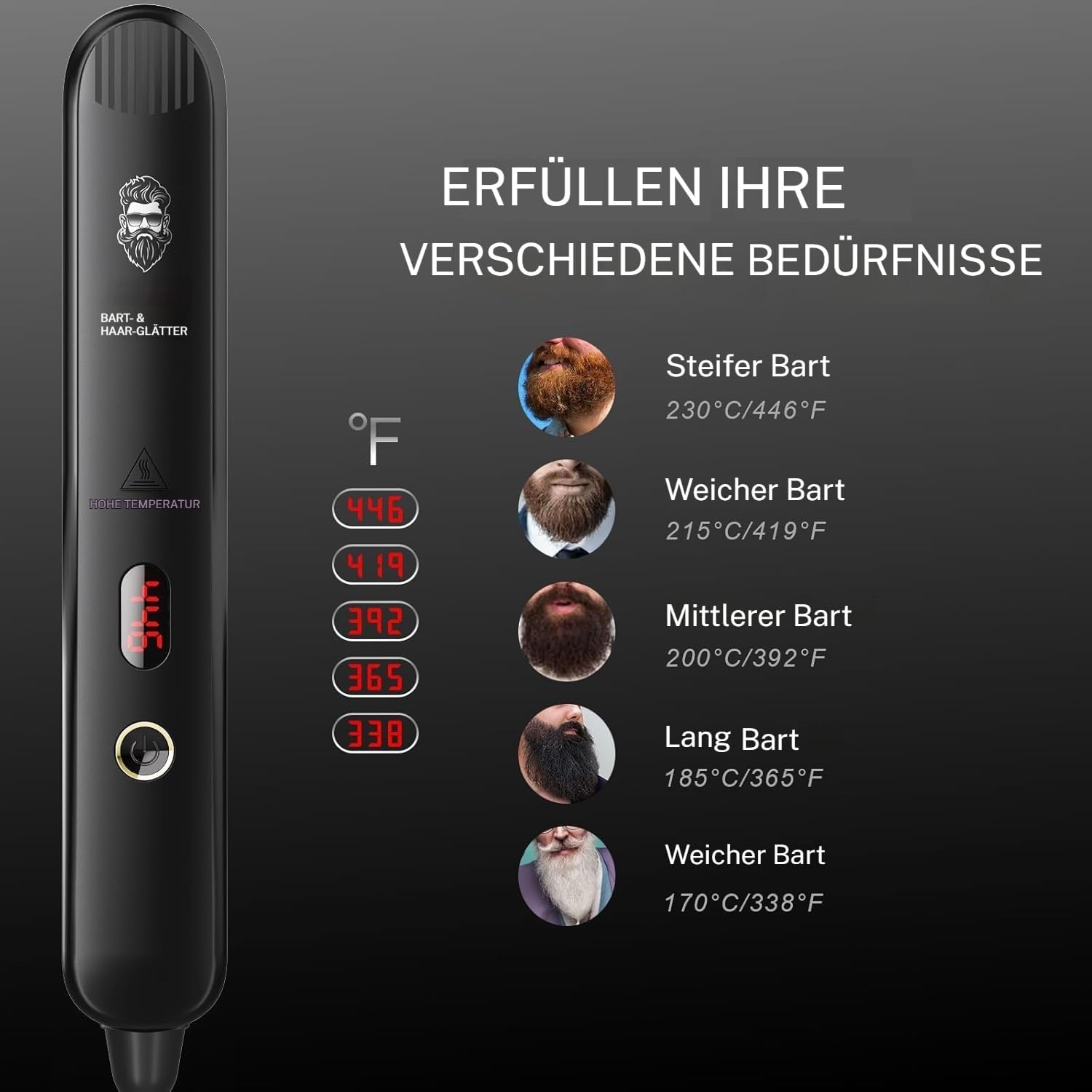 Ultra-Fast Heating Technologie sorgt bei diesem haarglätter glätter für das styling von langem und kurzem bart sowie bart glätteisen für schnelle Ergebnisse in nur 30 Sekundenhtener Brush for Men Anti-scalding Design schützt vor Verbrennungen, während die ionischer bürste für bart glätteisen und beheizte bürste kamm ein sicheres, angenehmes Erlebnis beim Styling bieten Ergonomisches Design des beard straightener brush für das styling von bartermöglicht komfortable Handhabung, ideal für männer und mini haarglätter auf Reisen oder zu Hause Hergestellt aus hochwertigem PLASTIC in elegantem Schwarz, ist der bartglätter für männer die ideale bürste für bart glätteisen und bietet langlebige Qualität für tägliches Styling Geeignet für alle Barttypen, ibürste für bart, perfekte Geschenkidee für den modernen Mann, enthält bartglätter kamm Bartglättungskamm mit LCD-Display und 5 Temperaturstufen. Ideal für alle Bart- und Haartypen - von weich bis lockig. Für makellose Formgebung den ganzen Tag. Perfektes Geschenk für Weihnachten und Geburtstage. Professioneller Bartglätter mit konstanter Hochtemperatur-Technologie. Heizt schneller auf und bändigt selbst widerspenstige Barthaare effektiv – zeitsparend und komfortabel. Inkl. Kamm für tägliches Styling und Haarglätten. Ideal für neue Looks. IONIC-Technologie bändigt jeden Bart sofort. Reduziert Temperaturschwankungen zum Schutz von Barthaar. Verringert Verfilzungen und Frizz für langanhaltend glatte, gesunde Ergebnisse. Ergonomisches Design mit größerer Bürste und Griff, liegt perfekt in der Hand. Stilvolles und schlichtes Produktdesign. Inkl. Reisetasche für perfekte Pflege jederzeit. Ideal als Geschenk für Freunde und Familie. Sicherheitszertifiziert mit CE/ROHS. Anti-Verbrennungsschutz und automatische Abschaltung nach 30 Minuten. Weltweit einsetzbar mit 110-240V. Für maximale Sicherheit bei der Bartpflege. | قیمت یورویی : 39.99€
