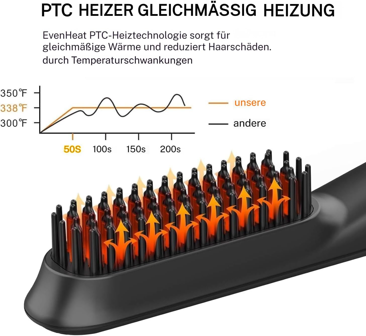 TENTEK Bartglätter Für Männer,Ultra-Fast Heating, Anti-Scalding Design, Negative-Ionen,Ionischer Glättbürste,Einstellbare Temperatur Styling Bürste, Elektrischer Kamm-Black | قیمت یورویی 39.99€
