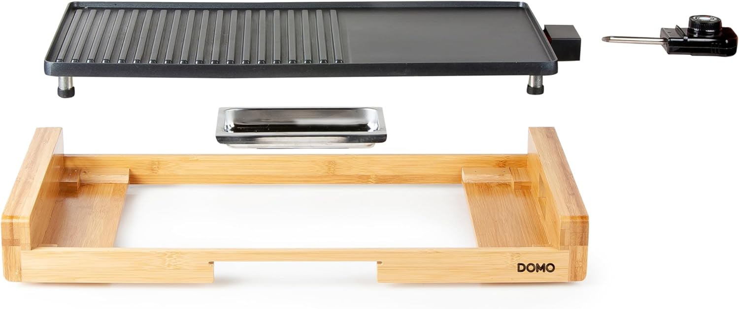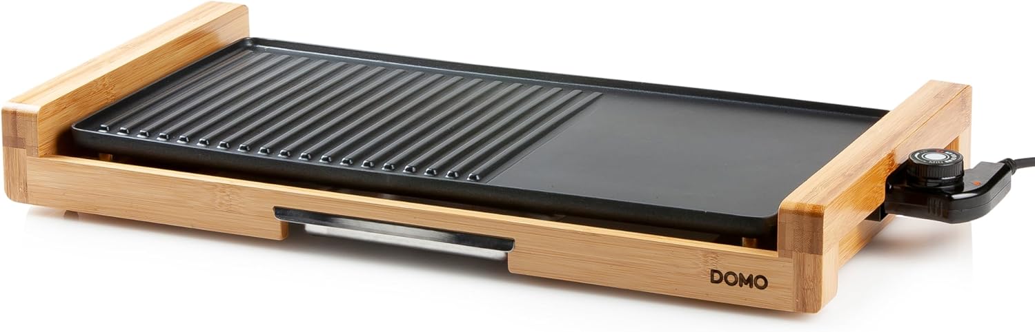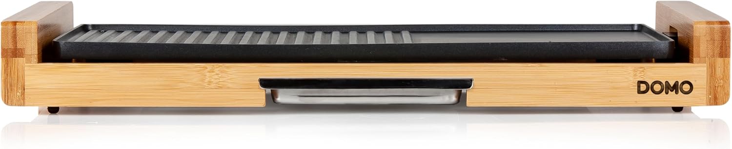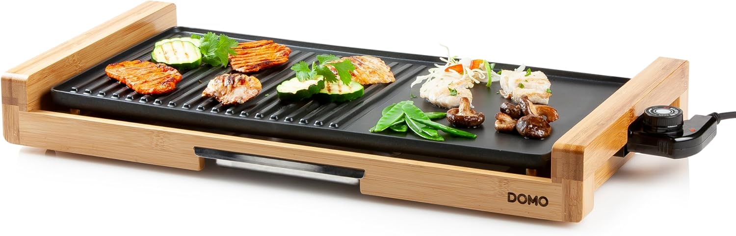 DOMO DO8311TP Electric Grill Plate Bamboo - Integrierte Fettauffangschale - 60 cm Abnehmbare Grillplatte - 2200 W | قیمت یورویی 83.9€