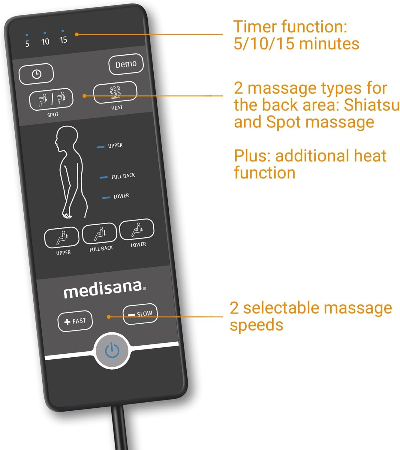 صندلی ماساژ Medisana RC 450، صندلی ریلکسیشن با عملکرد ماساژ شیاتسو، ماساژ پشت، شامل عملکرد حرارتی و ماساژ نقطهای، 2 نوع ماساژ، عملکرد تایمر کاربردی