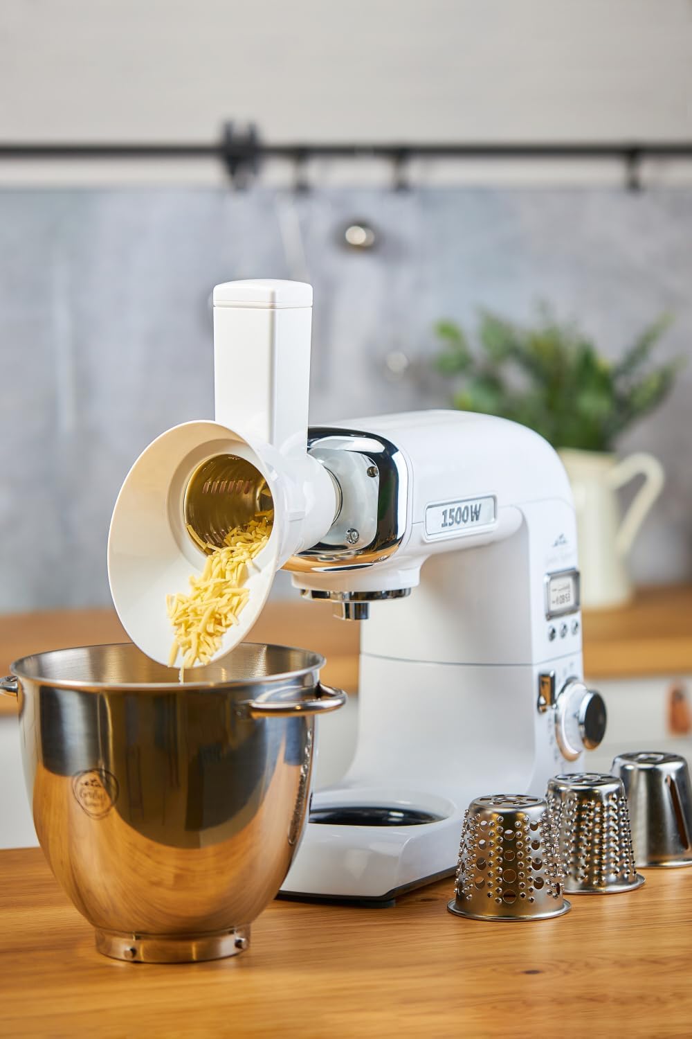 Erweitern Sie Ihren Küchenroboter oder Fleischwolf mit dem hochwertigen Reibeaufsatz ETA 002895020. In Kombination mit Ihrem bestehenden oder neuen ETA 0128, 0033, 0030, 0028, 0023 Roboter oder Fleischwolf 2075 können Sie eine Vielzahl von Zutaten und Lebensmitteln leicht reiben oder schneiden. Die Reibe verfügt über 4 rostfreie Aufsätze, einen Stopfer und einen integrierten Schutzdeckel, der das Lenken und Schützen vor herausspritzenden Teilen ermöglicht. Weitere Vorteile sind das einfache Aufsetzen und Austauschen von Zubehör, einschließlich Führungen, die einfache und schnelle Montage sowie die Möglichkeit, einzelne Teile in der Geschirrspülmaschine zu reinigen. Zubehör für Küchenroboter Gratus (ETA 0028), Gustus (ETA 0128), Gratussino (ETA 0023), Mezo (ETA 0033), Meno (ETA 0030) und Fleischwolf des Typs ETA2075 | قیمت یورویی : 48.6€