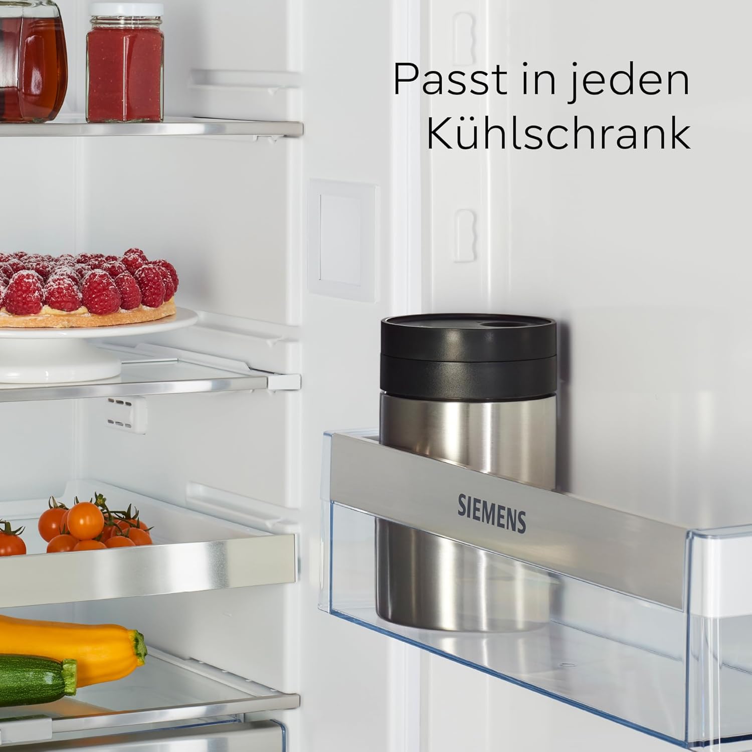 Isolationsbehälter mit hochwertiger Metall-Oberfläche Hält Milch über mehrere Stunden ohne Qualitätsverlust kühl Kompatibel mit den Siemens Kaffeevollautomaten EQ6 plus, EQ500 classic und EQ700 classic Passt ideal in die Kühlschranktür Der Milchbehälter mit freshLock Deckel erhält den frischen Geschmack der Milch, da unerwünschte Kühlschrankgerüche nicht in den Behälter dringen können | قیمت یورویی : 31.54€
