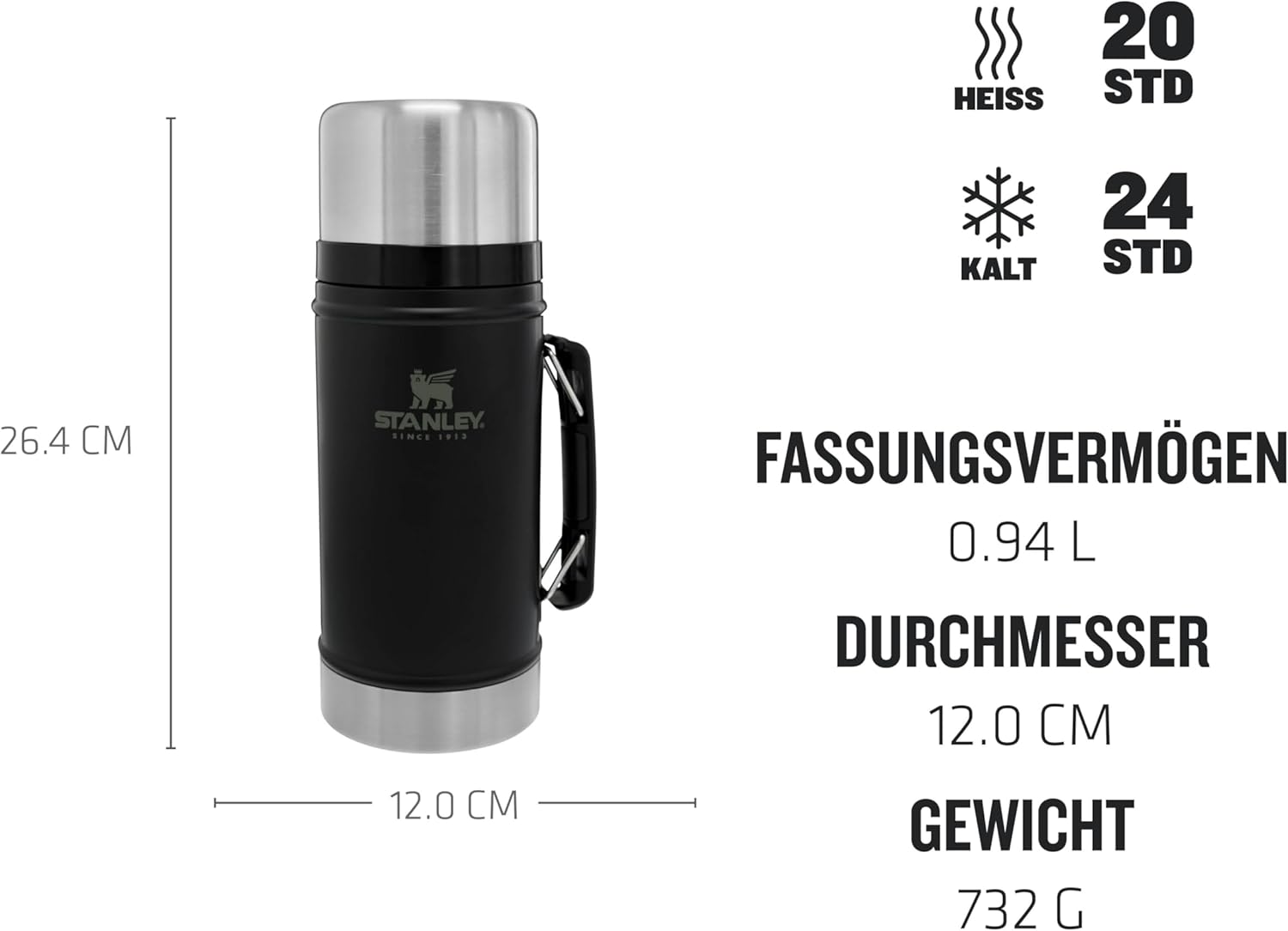 Stanley Classic Legendary Thermobehälter für Essen - Hält 20 Stunden Heiß oder 24 Stunden Kalt - Edelstahl Warmhaltebehälter Essen - BPA-Frei - Spülmaschinenfest 0.94L Matte Black | قیمت یورویی 49€