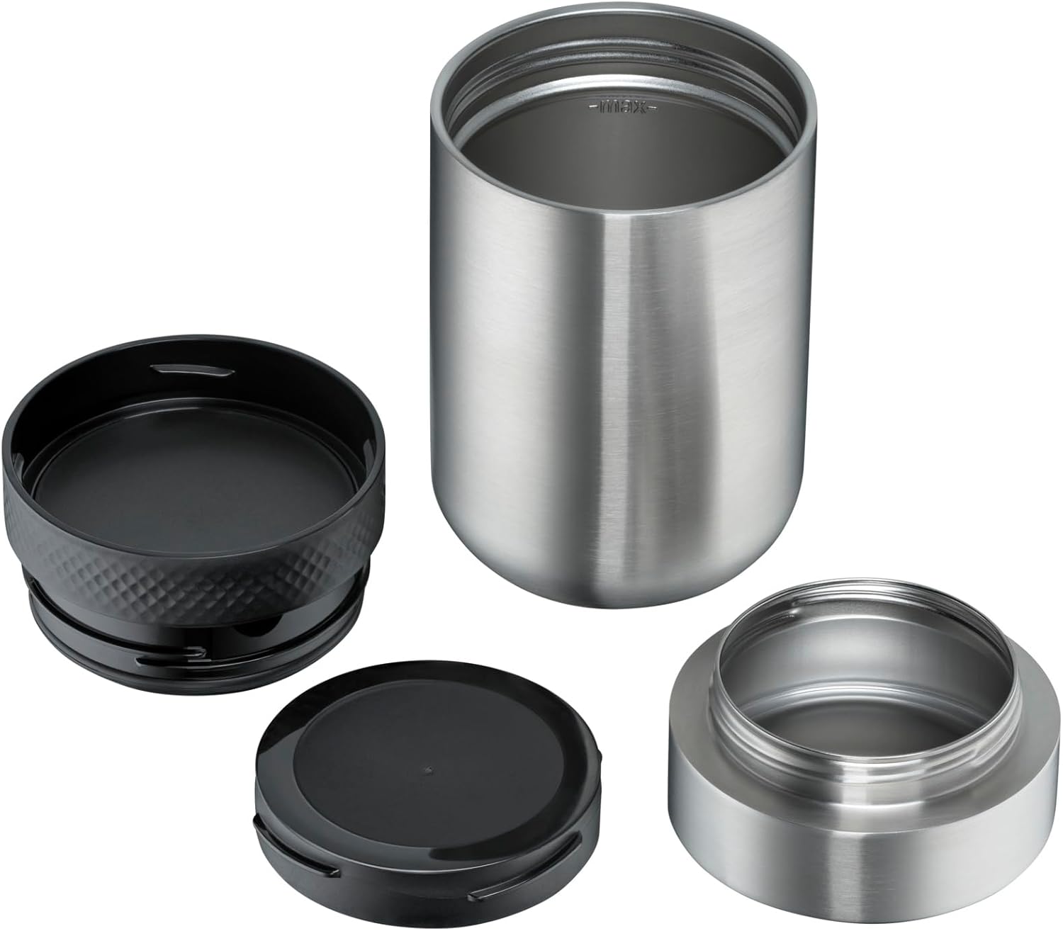WMF my2Go Thermo Speisebehälter 500ml Isolierbehälter und 200ml Zusatzbehälter, umweltfreundlich, Cromargan Edelstahl mattiert, spülmaschinengeeignet Isolierbecher 500 ml und 200 ml Zusatzbehälter لینک آمازون : https://www.amazon.de/dp/B0D181TGQS?th=1&psc=1 محتویات: ۱ عدد ظرف غذای حرارتی شامل یک ظرف عایق ۵۰۰ میلیلیتری و یک ظرف اضافی ۲۰۰ میلیلیتری (ارتفاع ۱۸ سانتیمتر، قطر ۹.۵ سانتیمتر) - شماره کالا: ۳۲۰۱۱۱۲۵۹۹ جنس: استیل ضد زنگ Cromargan® 18/10 (دوام استثنایی و بهداشت مطلوب)، پلاستیک. قابل شستشو در ماشین ظرفشویی، بدون طعم، مقاوم در برابر اسید مواد غذایی، رنگ ثابت و تمیز کردن آسان. عایق دوجداره و باکیفیت ThermaPro ظرف اصلی (۵۰۰ میلیلیتر) مواد سرد را تا ۱۲ ساعت سرد و مواد گرم را تا ۶ ساعت گرم نگه میدارد. ظرف اضافی ۲۰۰ میلیلیتری روی آن، سایر مواد را تا زمان غذا تازه نگه میدارد. ایدهآل برای موسلی خوشمزه یا میوههای ترد با ماست خنک، یا نان تست ترد با سوپ داغ. ظرف غذای My2Go کاملاً ضد نشت است - برای داشتن احساسی خوب و ایمن در حین حرکت.