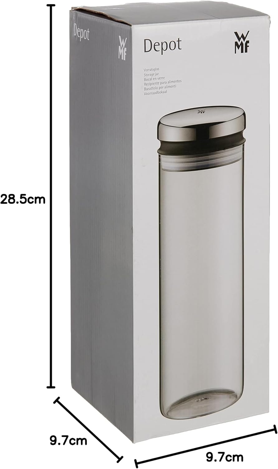WMF Depot Vorratsdose Glas 1,5l, Höhe 28,5 cm, Vorratsglas mit Deckel, Kaffeebohnen Behälter, Kaffeedose, Müslidose, Frischhaltedose mit große Einfüllöffnung 1,5 L | قیمت یورویی 24.21€
