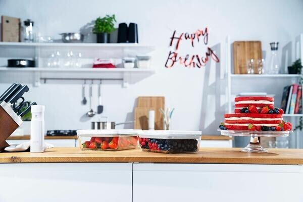 ظرف وکیوم زولینگ مدل ZWILLING Fresh & Save با ظرفیت 1.5 لیتر و طراحی ویژه برای نگهداری غذا در یخچال، یک راهکار حرفهای برای جلوگیری از خراب شدن زودهنگام مواد غذایی است. درب وکیومدار این ظرف، مانع از ورود هوا شده و از اکسید شدن غذا جلوگیری میکند. بدنهی شیشهای مقاوم به حرارت و تغییرات دمایی، امکان نگهداری انواع غذاها را فراهم کرده و مناسب برای یخچال، فریزر، مایکروویو و ماشین ظرفشویی است. این ظرف برای نگهداری غذاهای روزانه، سبزیجات، میوهها و مواد پروتئینی انتخابی ایدهآل است.