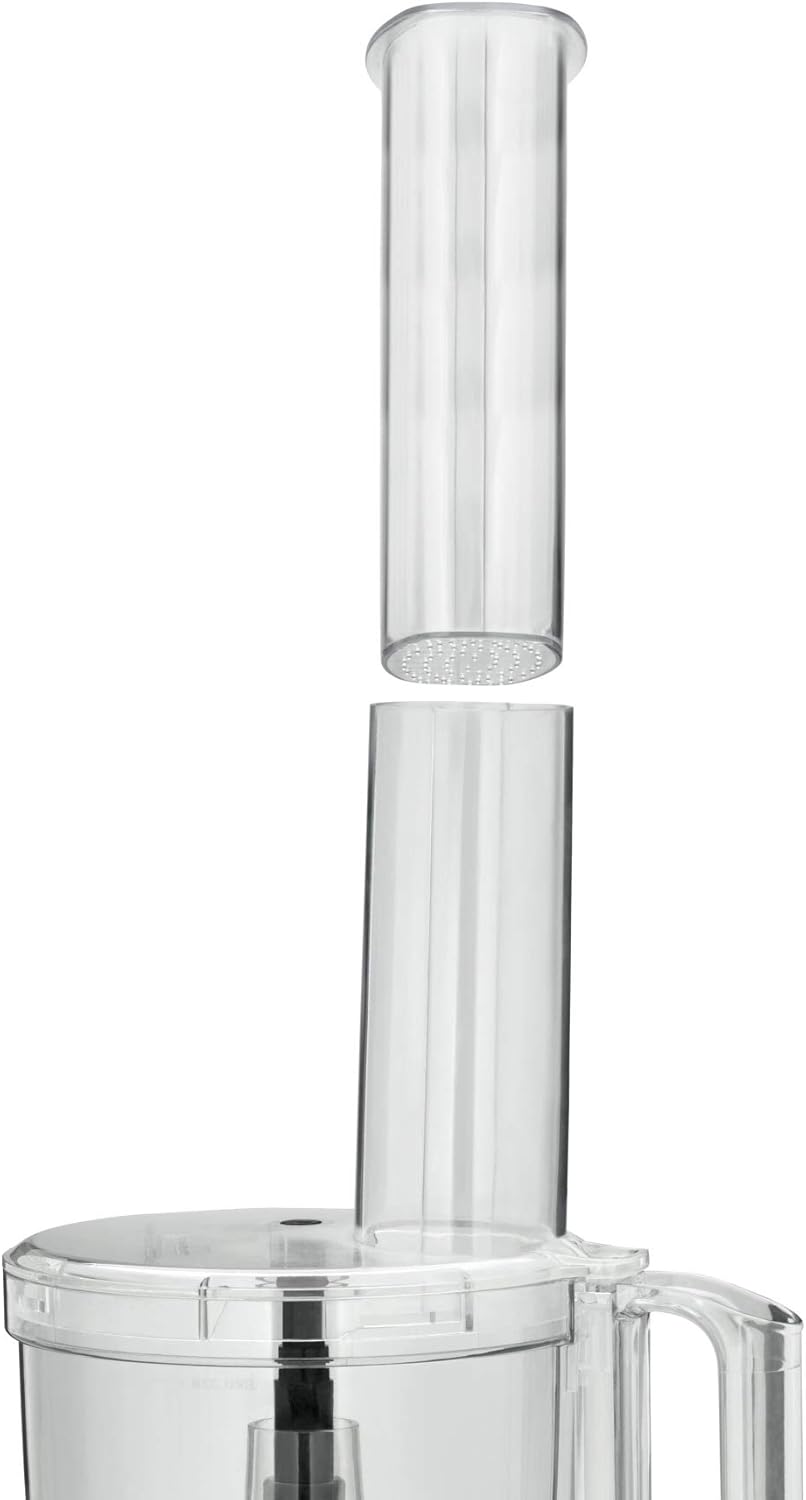 WMF Kult X Edition Küchenmaschine Zerkleinerer mit 5 Zubehör-Scheiben, Knetmesser, Stopfen, Edelstahl-Messer, Behälter 2,0l, 500 W Single لینک آمازون : https://www.amazon.de/dp/B07GSTFF99?th=1&psc=1 محتویات: ۱ عدد غذاساز (۴۴x۲۶.۵x۲۴ سانتیمتر، کابل ۱ متری)، ظرف ۲ لیتری، ۲ عدد دیسک رنده/برش (درشت، ریز)، ۱ عدد دیسک ژولین، ۱ عدد دیسک امولسیون، ۱ عدد تیغه، ۱ عدد قلاب خمیرزن، ۱ عدد هل دهنده - ۰۴۱۶۶۴۰۰۱۱ چاقوی استیل ضد زنگ با غلاف محافظ برای خرد کردن آسان سبزیجات و پیاز. چاقوی خمیرزن پلاستیکی برای کار با خمیرهای سبک. چهار دیسک: ریز و درشت برای رنده کردن سریع و آسان سیبزمینی و کوفتههای خانگی. نوارهایی برای برش سیبزمینی سرخکرده. ۲ تنظیم سرعت و عملکرد پالس. ظرف مخلوطکن پلاستیکی بزرگ ۲ لیتری با مقیاس و دهانهی بسیار بزرگ (۶ در ۸ سانتیمتر). جعبهی نگهداری دیسکها و تیغهها. قفل ایمنی و پایداری بالا به لطف پایههای مکش ضد لغزش. یک درپوش به پر کردن کمک میکند.