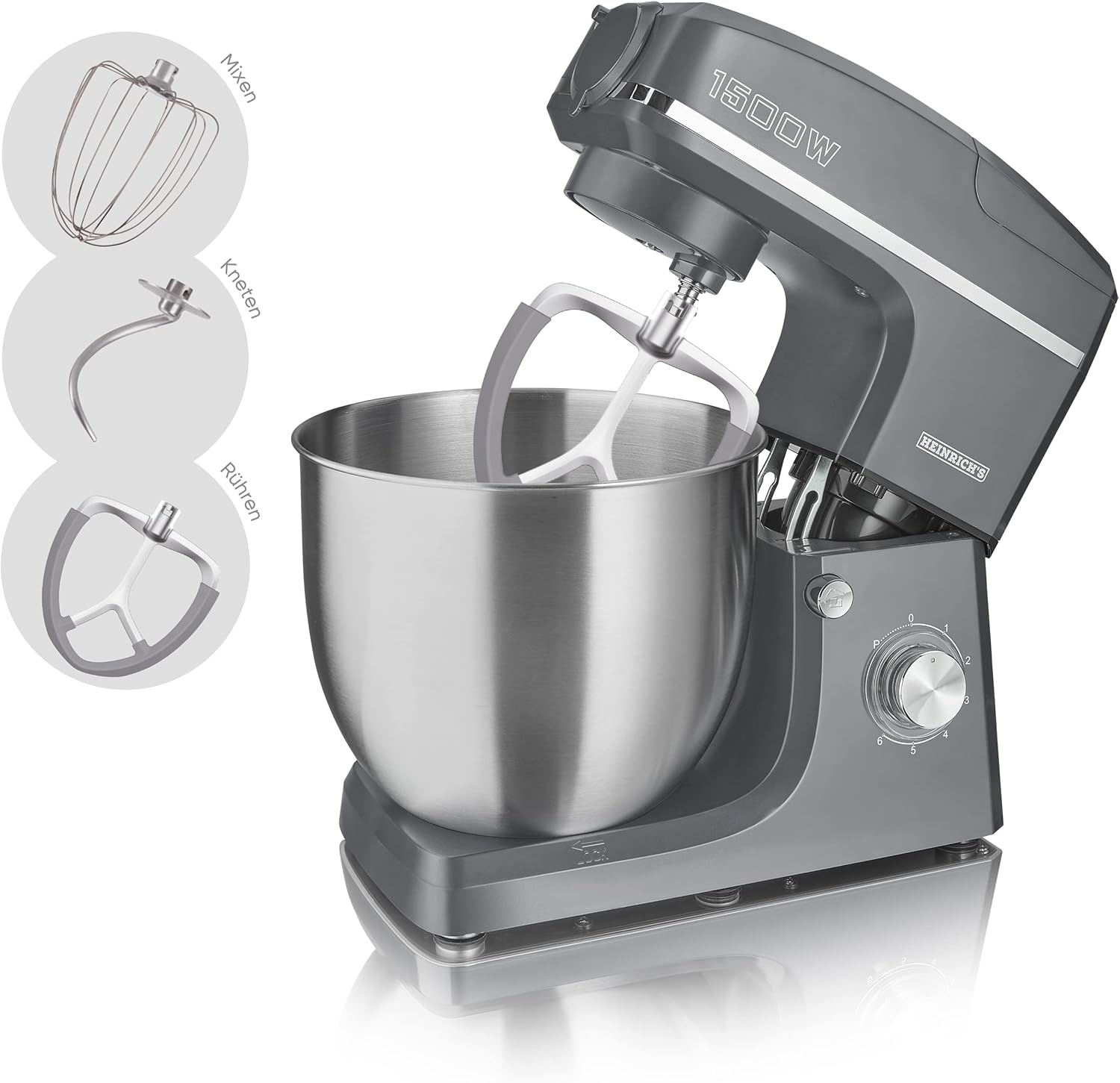 غذاساز سه کاره HEINRICHS مدل Universal، لوازم آشپزخانه ۱۵۰۰ وات، ۶ حالت سرعت، دستگاه خمیرزن چند منظوره با چرخ گوشت، کاسه مخلوط کن ۱.۵ لیتری، کاسه استیل ضد زنگ XXXL 10L (خاکستری)