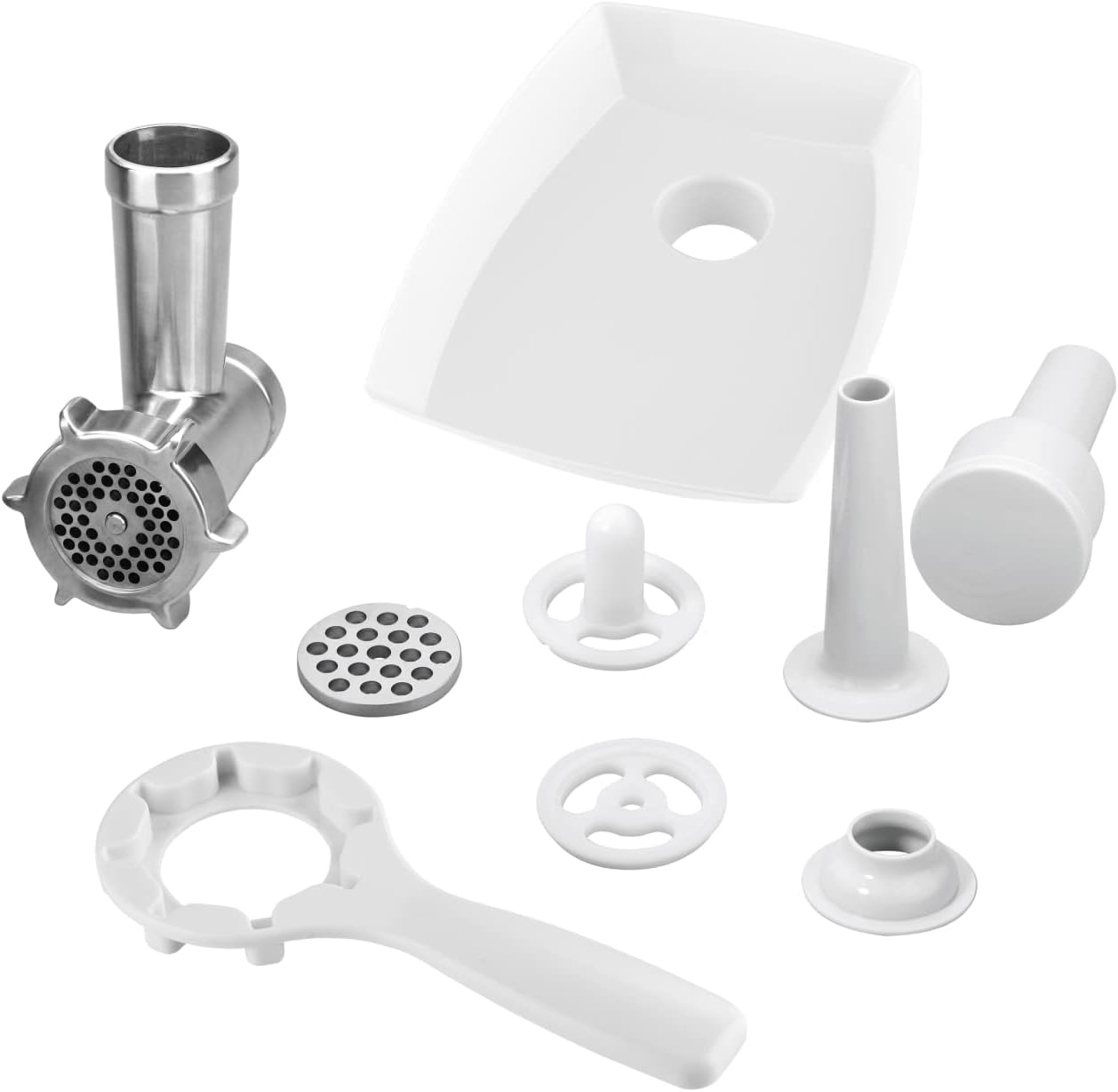 Elegante Küchenmaschine ETA Gratussino Smart beherrscht klassische Funktionen wie Rühren, Kneten und Schlagen, ermöglicht Ihnen jedoch auch problemlos das Zerkleinern von Fleisch und die Zubereitung verschiedener Arten von Wurstwaren. Ein leistungsstarker Motor mit 800 W Leistung und Stabilisator sowie eine große Edelstahlschüssel mit einem Fassungsvermögen von 4,5 Litern und einem planetarischen Mischsystem ermöglichen die Verarbeitung größerer Mengen von Zutaten. Für verschiedene Arten von Gerichten stehen Ihnen 6 Geschwindigkeitsstufen zur Verfügung. Die ETA Gratussino Smart Küchenmaschine ist auch mit einem Puls-Schalter ausgestattet. Die Küchenmaschine ist mit umfangreichem Zubehör ausgestattet, das die Zubereitung verschiedener Lebensmittel ermöglicht. Der Knethaken, der Schneebesen und der Rührbesen sind klassische Ergänzungen für Küchenmaschine. Die enthält jedoch zusätzlich einen Fleischwolf mit einem Durchmesser von 54 mm, einen Aufsatz zum Befüllen von Wurstwaren und einen Aufsatz für Kebbe-Fleischbällchen in seiner Grundausstattung. | قیمت یورویی : 165.87€
