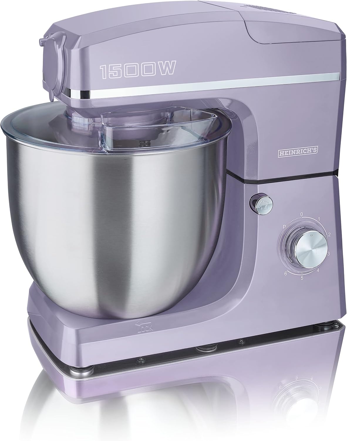 HEINRICHS 3 in 1 Universal Küchenmaschine, Küchengerät 1500W, 6 Geschwindigkeitsstufen, Multifunktionale Knetmaschine mit Fleischwolf, 1.5L Mixerbehälter, XXXL 10L Edelstahlschüssel (Lila) | قیمت یورویی 149.9€