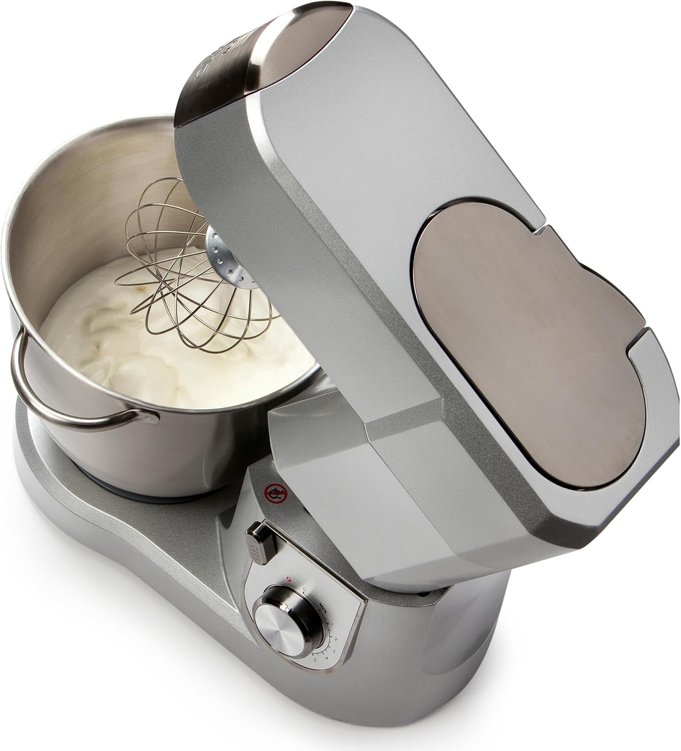 Leistungsstarker leiser Motor 6,7 l Rührschüssel aus gebürstetem Edelstahl Transparenter Anti- Spritzdeckel mit Füllöffnung Vollmetall-Getriebe; Planetarische Mischwirkung Konstante Geschwindigkeit, unabhängig vom Inhalt Variable Drehzahlregelung mit Puls-Funktion Inklusive DO9079KR-PROMO: Knethaken, Mixer, Schneebesen, Standmixer (1,5 l) und Saftpresse 230 V - 50 Hz - 1500 W | قیمت یورویی : 229€