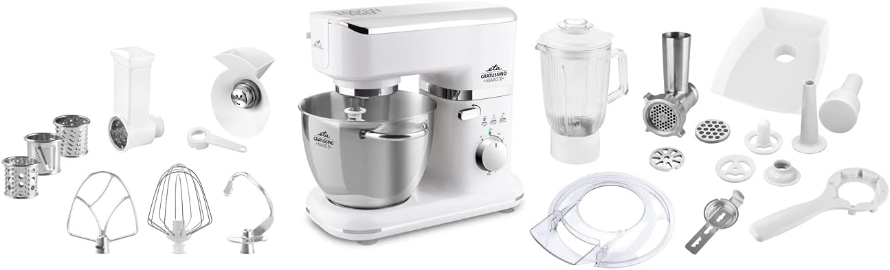 ETA Küchenmaschine Gratussino Maxo 2-1000W, Reiches Zubehör für Perfektes Kneten von Teig Oder Mahlen von Fleisch