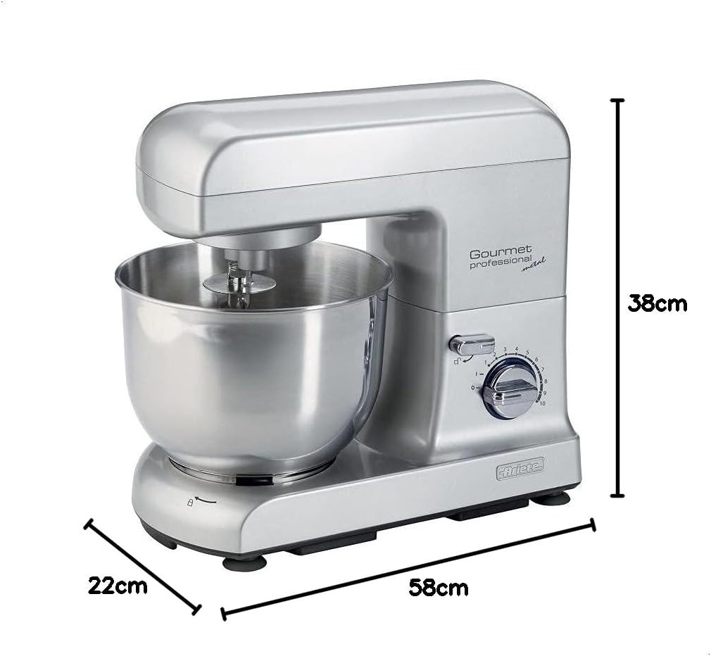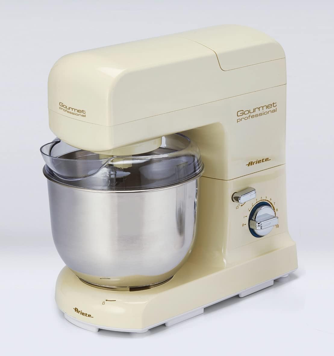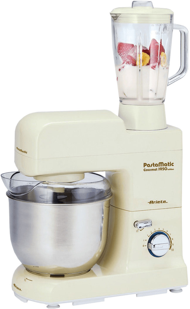 مدل Pastamatic Gourmet 1950 Edition از برند آریته، یک همزن برقی رومیزی با طراحی کلاسیک، توان بالای ۱۵۰۰ وات و کاسه استیل ضد زنگ است که برای مصارف خانگی و حرفهای مناسب است. این دستگاه مجهز به چندین ابزار شامل سری همزن، قلاب خمیر و پره تخت است و قابلیت همزدن مواد با بافتهای مختلف، از خمیر نان گرفته تا خامه و تخممرغ را با قدرت بالا و یکنواختی انجام میدهد. بدنه مقاوم، عملکرد بیصدا و طراحی جذاب آن را به انتخابی کاربردی و زیبا تبدیل کرده است.