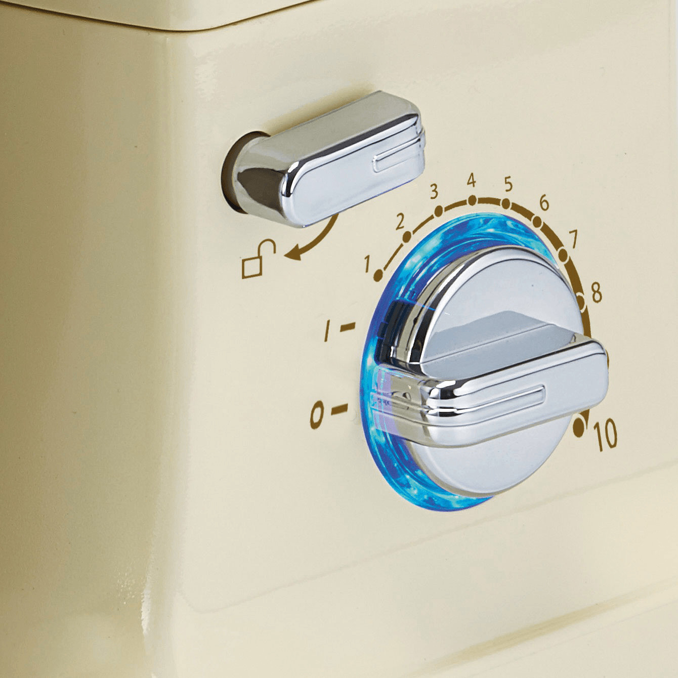 مجهز به تنظیم سرعت متغیر، عملکرد پالس، قفل ایمنی، کاسه بزرگ برای حجم بالا، و پایه ضد لغزش. طراحی ارگونومیک و ظاهری رترو آن، هماهنگ با سایر محصولات سری 1950 آریته است.