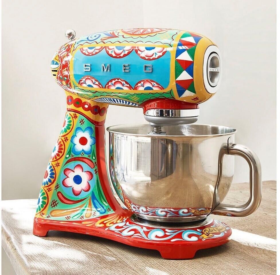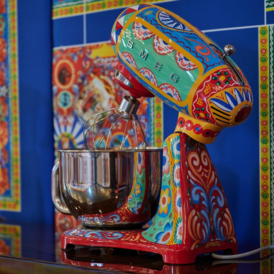 غذا ساز کلکسیونی اسمگ با طراحی ویژه Dolce & Gabbana و نقوش سیسیلی، مناسب آشپزخانههای خاص و حرفهای.