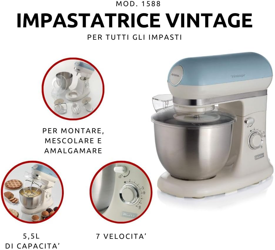 غذا ساز چندکاره آریته مدل Vintage با طراحی کلاسیک و رنگ جذاب، انتخابی متفاوت برای آشپزخانه های امروزی است.