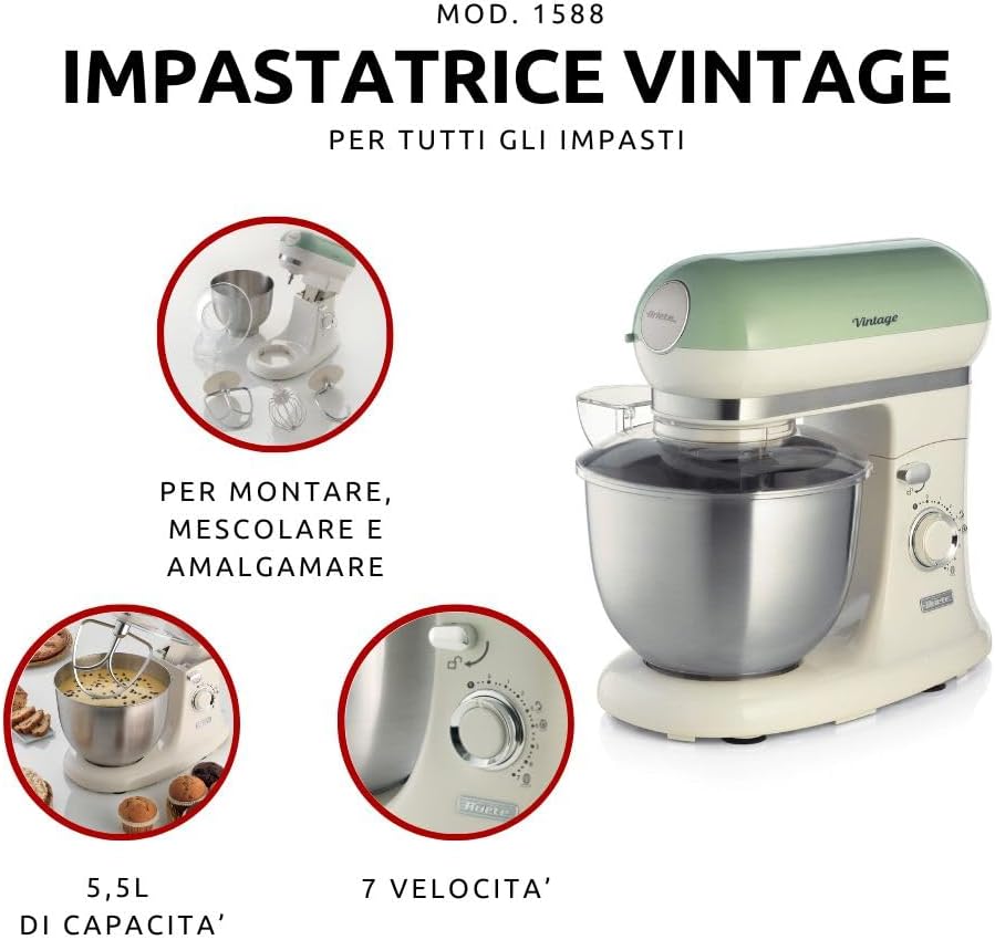 غذا ساز چندکاره آریته مدل Vintage با طراحی کلاسیک و رنگ جذاب، انتخابی متفاوت برای آشپزخانه های امروزی است.