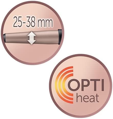 Fortschrittliche Keramikbeschichtung und intelligente Opti Heat-Technologie für konstante und gezielte Wärmeverteilung, weiche und geformte Locken Einstellbare Temperatur (120 bis 210 °C) und Pro+-Funktion 185 °C. Digitaler Bildschirm 25-38 mm Durchmesser für enge Locken oder natürliche Wellen Sicherheit mit Temperatursperre, isolierte Spitze, automatische Abschaltung nach 60 min 1 hitzebeständiger Beutel im Lieferumfang enthalten | قیمت یورویی : 29€