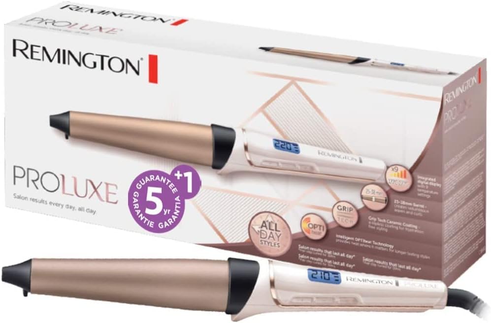 فرکننده موی رمینگتون برای فرهای بزرگ و فرهای طبیعی [مخروطی 25-38 میلیمتر] پرولوکس دیجیتال (فناوری OPTIheat، پوشش سرامیکی Grip-Tech) - نمایشگر LCD 120-210 درجه سانتیگراد، فرهای ساحلی، فرکننده موی CI91X1 تکی