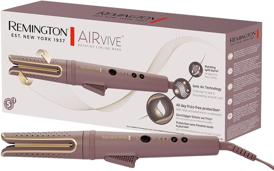 Remington AIRvive™ Lockenstab [rotierend] Ionic Air-Technologie für langanhaltende Locken (Ultra-Keramikstylingplatten mit Anti-Frizz-Mikrowirkstoffen, LED-Display 160-210°C für alle Haartypen) CI8930 | قیمت یورویی 99.99€