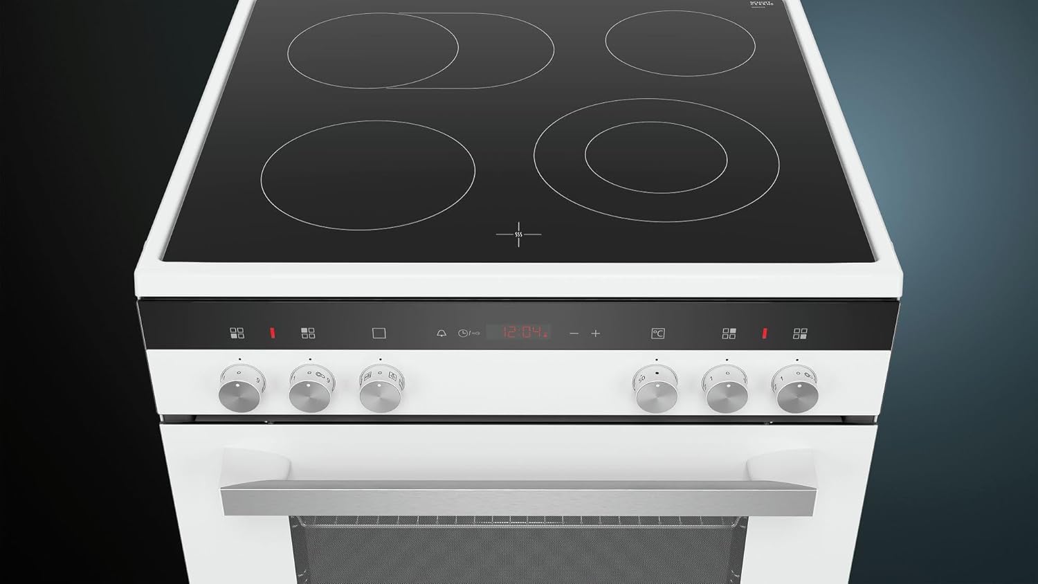 Siemens HK9R3A220 iQ300 freistehender Elektroherd mit Glaskeramik-Kochfeld, 60 cm, Weiß, ecoClean Reinigung, Schnellaufheizung, 3D Heißluft Plus | قیمت یورویی 645€