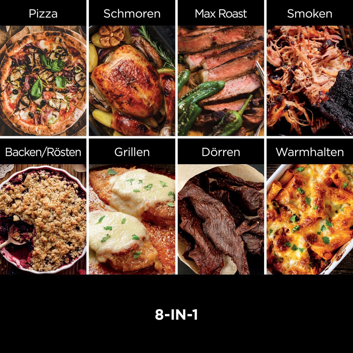 8-IN-1-OUTDOOROFEN, PIZZAOFEN UND BBQ-RAUCHER: Funktionen wie Pizza, Max Roast, Gourmet Roast, Top Heat, Backen, Räuchern, Dehydrieren und Warmhalten. Nehmen Sie Ihre Küche mit nach draußen und entdecken Sie eine Welt voller Aromen ARTISAN PIZZA OFEN: Pizzen ohne Umdrehen in weniger als 3 Minuten*. Artisan, Thin, New York, Deep Pan, Calzone und benutzerdefinierte Einstellungen. Inklusive Pizzastein. (*Ohne Vorwärmzeit, bei 370 ℃ gekocht) 370℃ HITZE: Der Ziegelofen zum Braten und Brutzeln. Leistungsstarke elektrische Hitze für vollständige Temperaturkontrolle HOLZFEUER-TECHNOLOGIE: Mit den Woodfire-Pellets aus 100% Hartholz können Sie allem, was Sie kochen, ganz einfach rauchige Aromen verleihen. Niedriges und langsames Rauchen für zarte Ergebnisse ENTHÄLT: Ninja Woodfire Outdoor-Ofen, Pizzastein, Pro-Heat-Schale, Bratrost, Räucherbox, Pelletschaufel, 2 x Pellets-Starterpackungen. 2400 W. Gewicht: 14,6 kg. Farbe: Burnt Orange ABMESSUNGEN: Ca. 38 cm x 45,7 cm x 54,6 cm (H x B x L). Nur für den Außenbereich geeignet | قیمت یورویی : 264.7€
