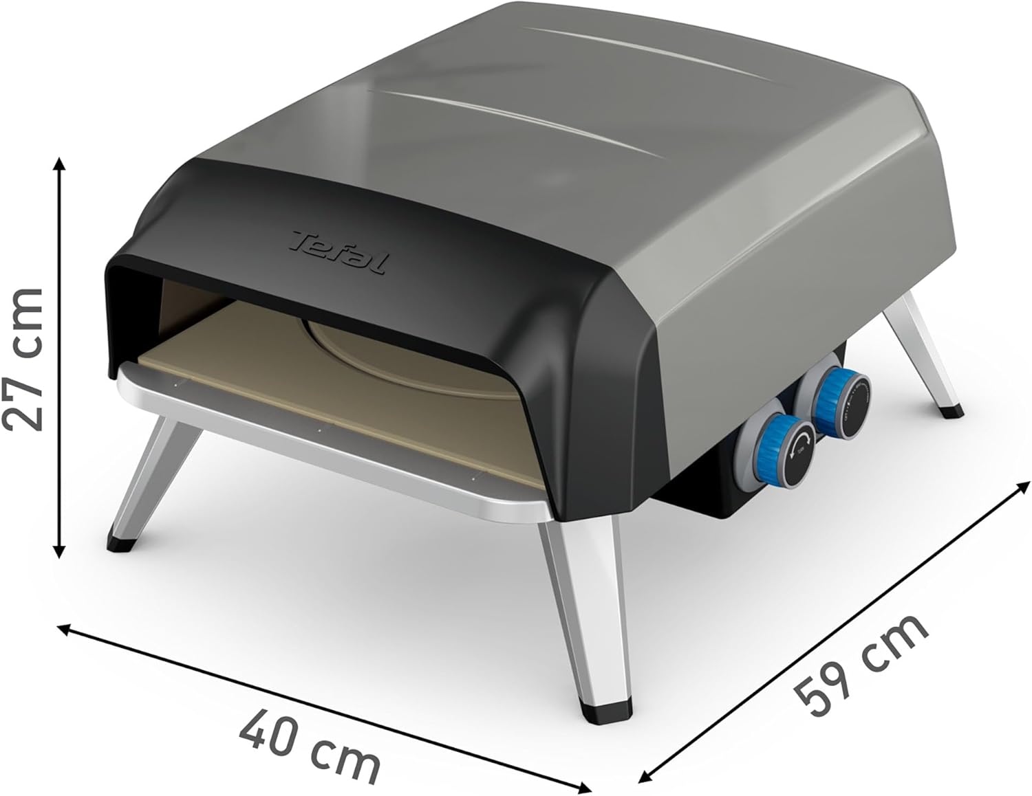 Tefal Pizza Pronto Gas-Pizzaofen für den Außeneinsatz, bis 400 °C, Temperaturregler, Ein-/Ausschalter, Steuerung des Drehsteins, kompakt, inkl. Pizzaschieber, Edelstahl, JM413015 | قیمت یورویی 279.99€
