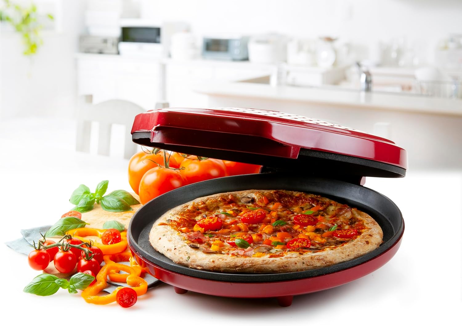 DOMO DO9177PZ Pizzaofen 'My Express' - Pizzapfanne rot - Pizza fertig in nur 12 Minuten - Multifunktionales Gerät Without ceramic stone | قیمت یورویی 34.99€