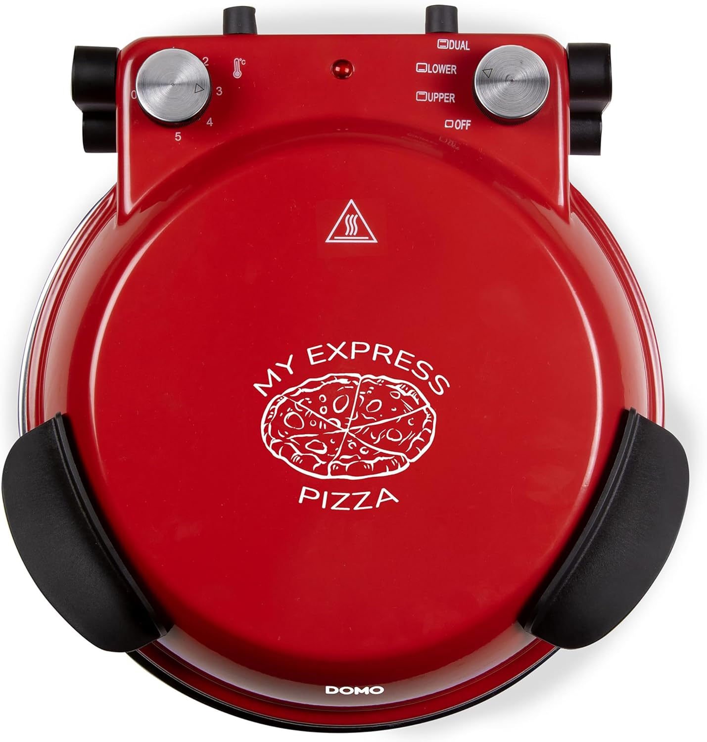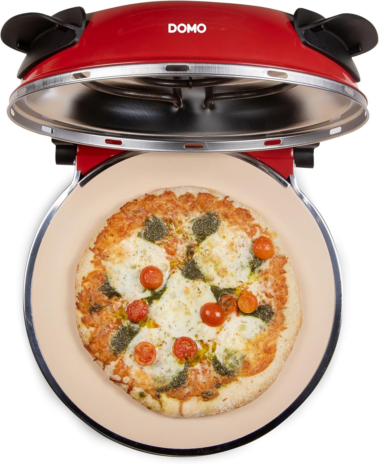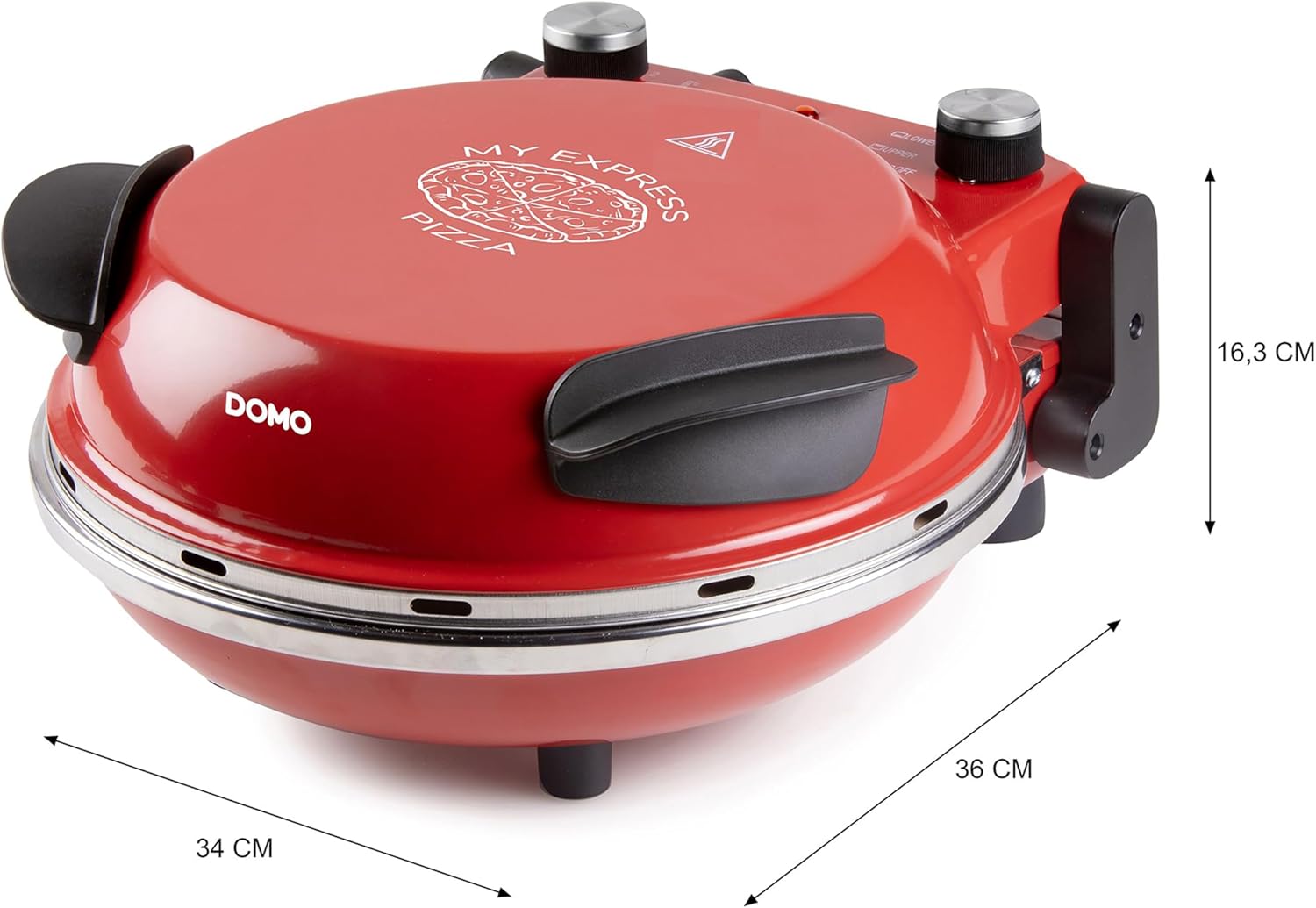 DOMO DO9284PZ Pizzaofen 'My Express Pizza' - Backzeit 3–5 Minuten - Mit Keramikstein - 1200 W - Rot With ceramic stone | قیمت یورویی 97.2€
