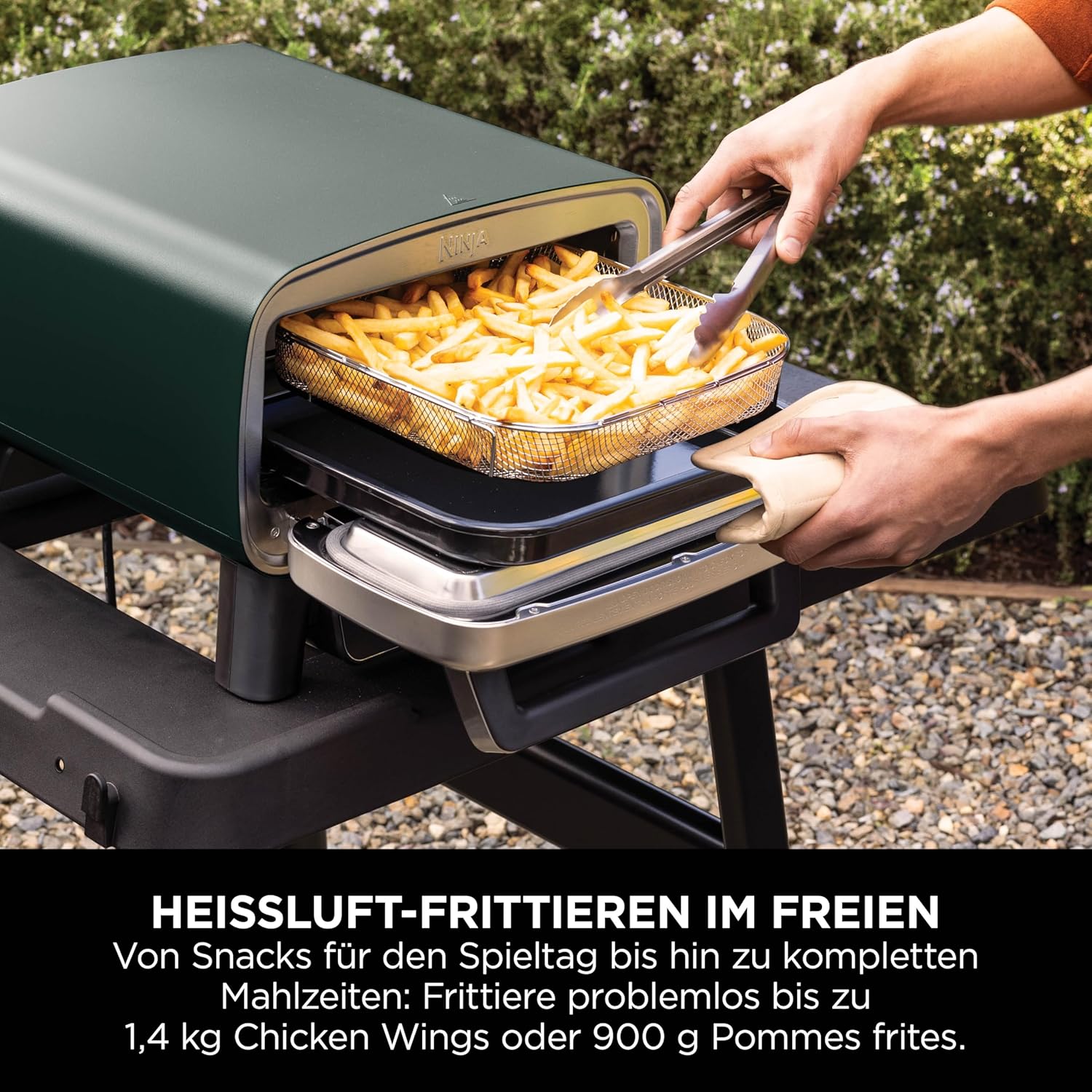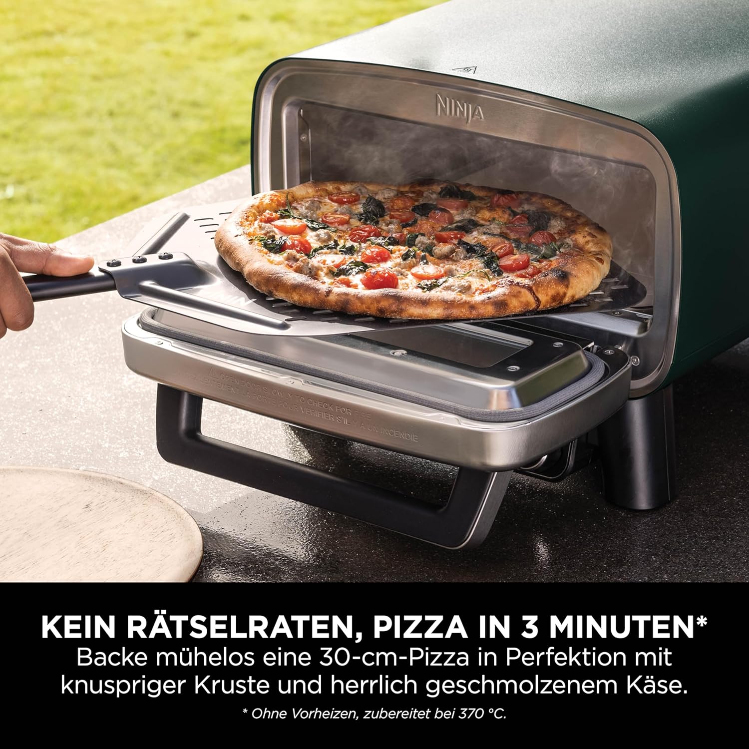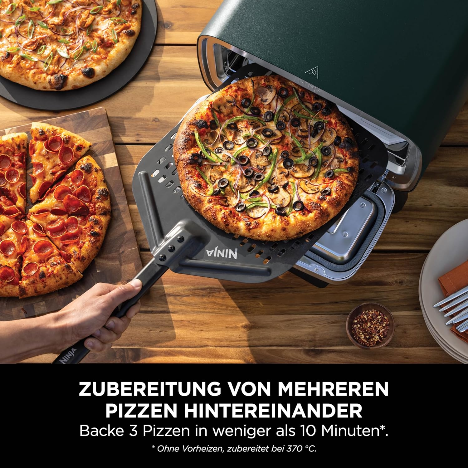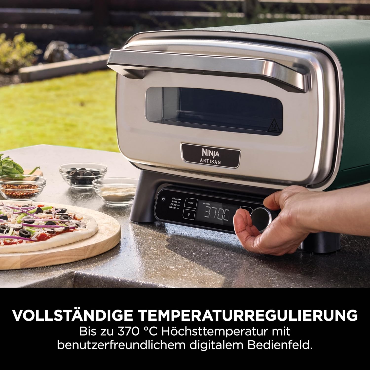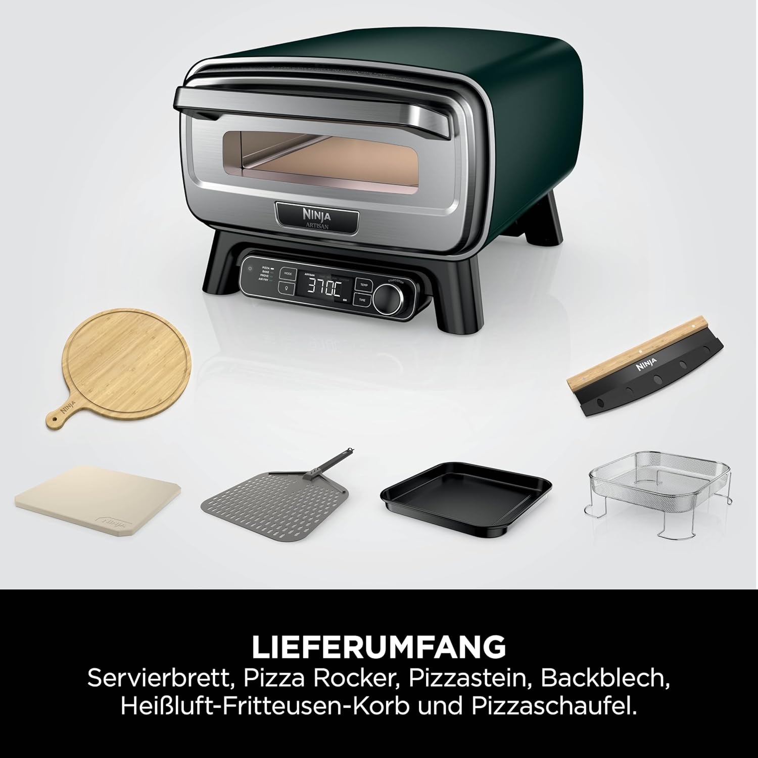 Ninja Artisan Outdoor-Pizzaofen und Heißluftfritteuse, 4 Funktionen, Servierbrett, Pizza-Wiegemesser, 30-cm-Pizzastein, Pizzaschale, Backblech und Heißluft-Fritteusen-Korb, Grün MO201AMZEU 4-in-1 Pizzaofen (Exklusives Bundle) | قیمت یورویی 299.99€