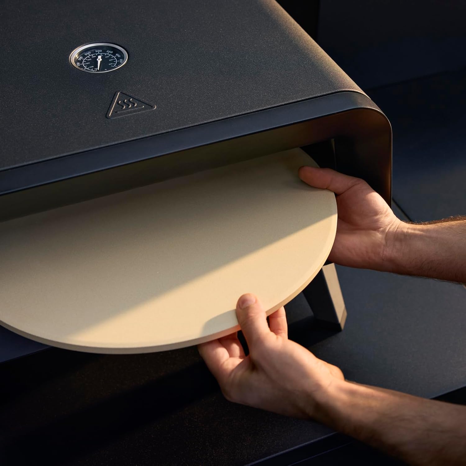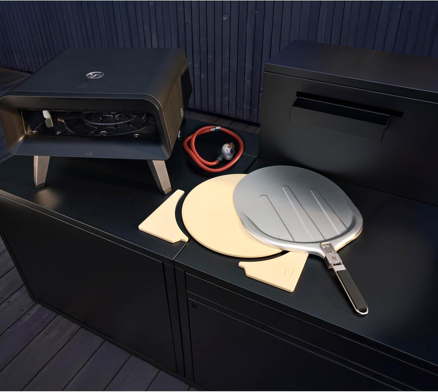 Italien einfach nach Hause holen – mit dem Pizzaiolo Pro Pizzaofen von WMF für authentischen und unwiderstehlichen Pizzagenuss in 90 Sekunden Inhalt: 1 WMF Pizzaiolo Pro Pizzaofen (37 cm tief, 55 cm breit, 62 cm tief, 23 kg Gewicht), 1 Pizzaschaufel, Artikelnummer: 0415700071 Dank automatischer Drehmechanik dreht sich der große Pizzastein (40 cm Durchmesser) aus wertig Cordierit um sich selbst – optimal für gleichbleibend gleichmäßige und knusprige Ergebnisse, jedes Mal aufs Neue Der aus massivem Gusseisen und in C-Form gefertigte Gasbrenner ermöglicht Backtemperaturen von über 450° C sowie eine besonders gleichmäßige Hitzeverteilung Das integrierte Thermometer erlaubt eine präzise Temperaturkontrolle und schafft damit optimale Voraussetzungen für das unwiderstehliche Zusammenspiel aus knusprigem Teig und cremig-geschmolzenem Käse Ofengehäuse aus 1 Millimeter starkem, 3-fach pulverbeschichtetem Stahl und Frontlippe aus wertig Aluminiumguss für beste Korrosions- und UV-Beständigkeit sowie maximale Stabilität und Robustheit Praktische, mitgelieferte große Pizzaschaufel - für ein einfaches und sicheres Backerlebnis und zur platzsparenden Aufbewahrung wie auch die Standfüße klappbar | قیمت یورویی : 599€