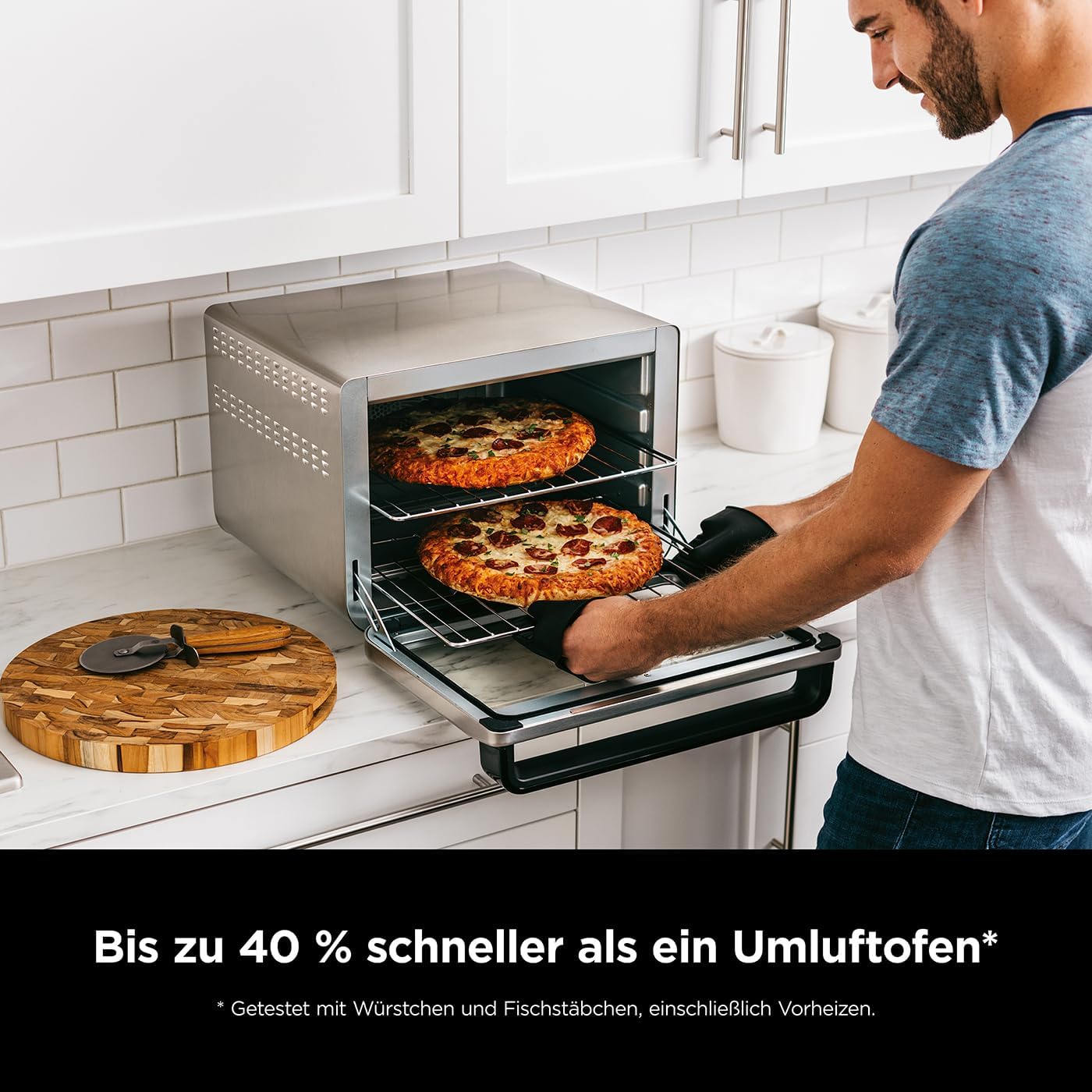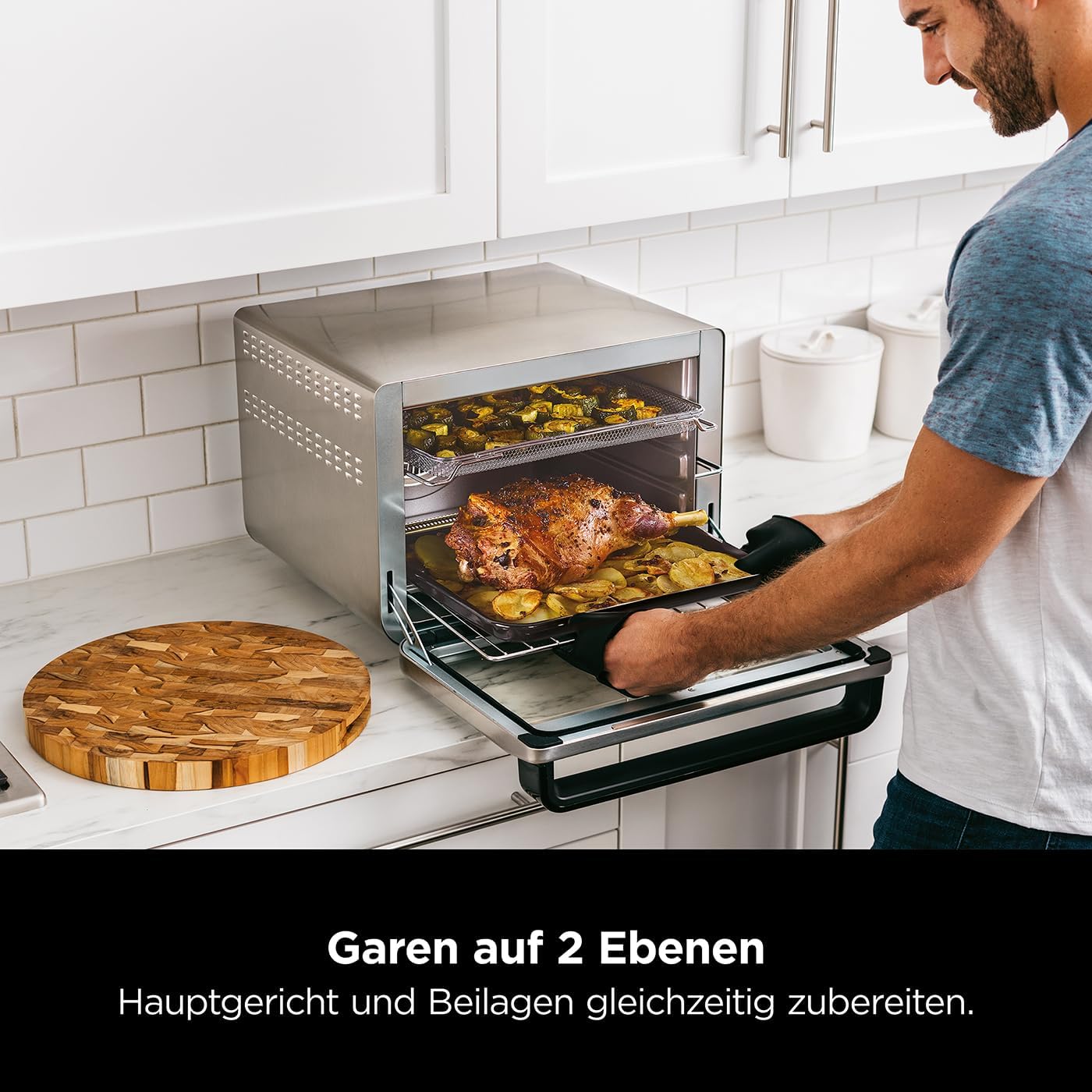 15-MINUTEN-MAHLZEITEN* IN EINEM TOPF: Wählen Sie Ihre Basis, Gemüse und Protein, um schnell eine vollständige Mahlzeit in nur 15 Minuten* mit der Funktion des Speedi Meals Rapid Cookers zu kreieren (*Ausgenommen Vorheizzeit) 10 FUNKTIONEN: Speedi Meals, Dampf Airfryer, Dampfbacken, Dampfgaren, Grillen, Heißluftfrittieren, Backen/Braten, Dehydrate (Dörren), Anbraten/Dünsten, Langsamkochen. Einfaches Umschalten zwischen Multikocher- und Luftfrittieren/Herdmodi. MEHR ALS EIN MINI-OFEN; Genießen Sie grenzenlose Mahloptionen mit 10 anpassbaren Kochfunktionen - Air Fry, Rösten, Ganzes Rösten, Grillen, Backen, Pizza, Dehydrieren, Aufwärmen, Toasten und Bagel EINFACH ZU BEDIENEN; Schicke Touchscreen-Bedienelemente und ein digitales Display befinden sich bequem am Ofengriff. Eine herausnehmbare Krümelschublade schiebt sich heraus, damit Sie Krümel und kleine Reste leicht entfernen können Enthält Ninja Foodi 10-in-1 Multifunktionsofen (EU-Stecker), 2 Drahtgestelle, Backblech, Bratblech, Heißluftfrittierkorb und Rezeptanleitung. Farbe: Silber/Schwarz Maße: H33,5 cm x B43,5 cm x T50,5 cm Gewicht: 13,1 kg | قیمت یورویی : 258.99€
