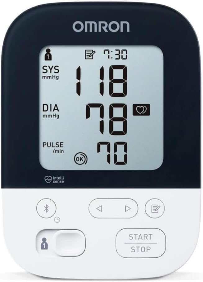 Omron M4 Intellit IT Tensiómetro Digital de Brazo لینک آمازون : https://www.amazon.de/dp/B084YW52DR?th=1&psc=1 فشارسنج تک بازویی L با فشارسنج Intelliwrap PR، متوسط/پهن، 22 تا 42 سانتیمتر یک دستگاه بالینی معتبر برای همه و مخصوص زنان باردار یا افراد مبتلا به Pr Clampsie دارای نمایشگر سهگانه (Sys/Dia/Puls) میانگین مقادیر هفتگی با حرکت بدن و یک کابینت m با ۱۲۰ اندازهگیری برای ۲ نفر، که ۶۰ اندازهگیری برای هر نفر است و یک حالت unvigen، که میتواند به طور متوسط در صبح و عصر به ۳ پریز برق وصل شود. با این دستگاه میتوانید تنش را با دقت اندازهگیری، صرف نظر از موقعیت دستبند، کنترل کنید. اجزا: مانیتور، دستبند، جعبه نگهداری، ۴ باتری قلمی، دفترچه راهنما