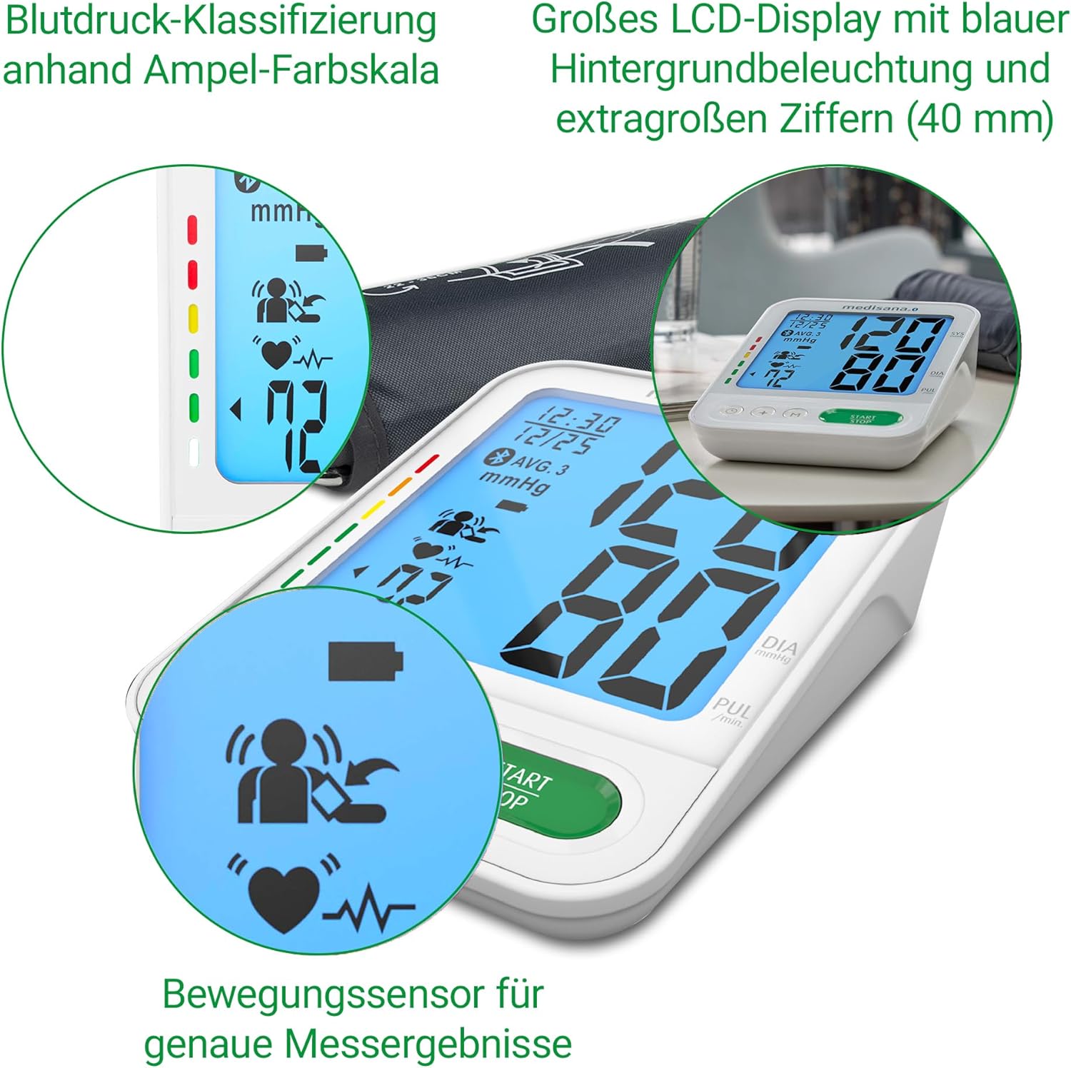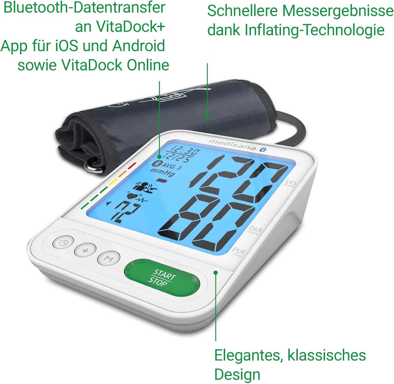 medisana BU 584 Blutdruckmessgerät für den Oberarm, Präzise Blutdruck und Pulsmessung, Mit praktischer App zum Daten auswerten und abspeichern, Ampel-Skala, Arrhythmie Erkennung & Warnung | قیمت یورویی 43.99€