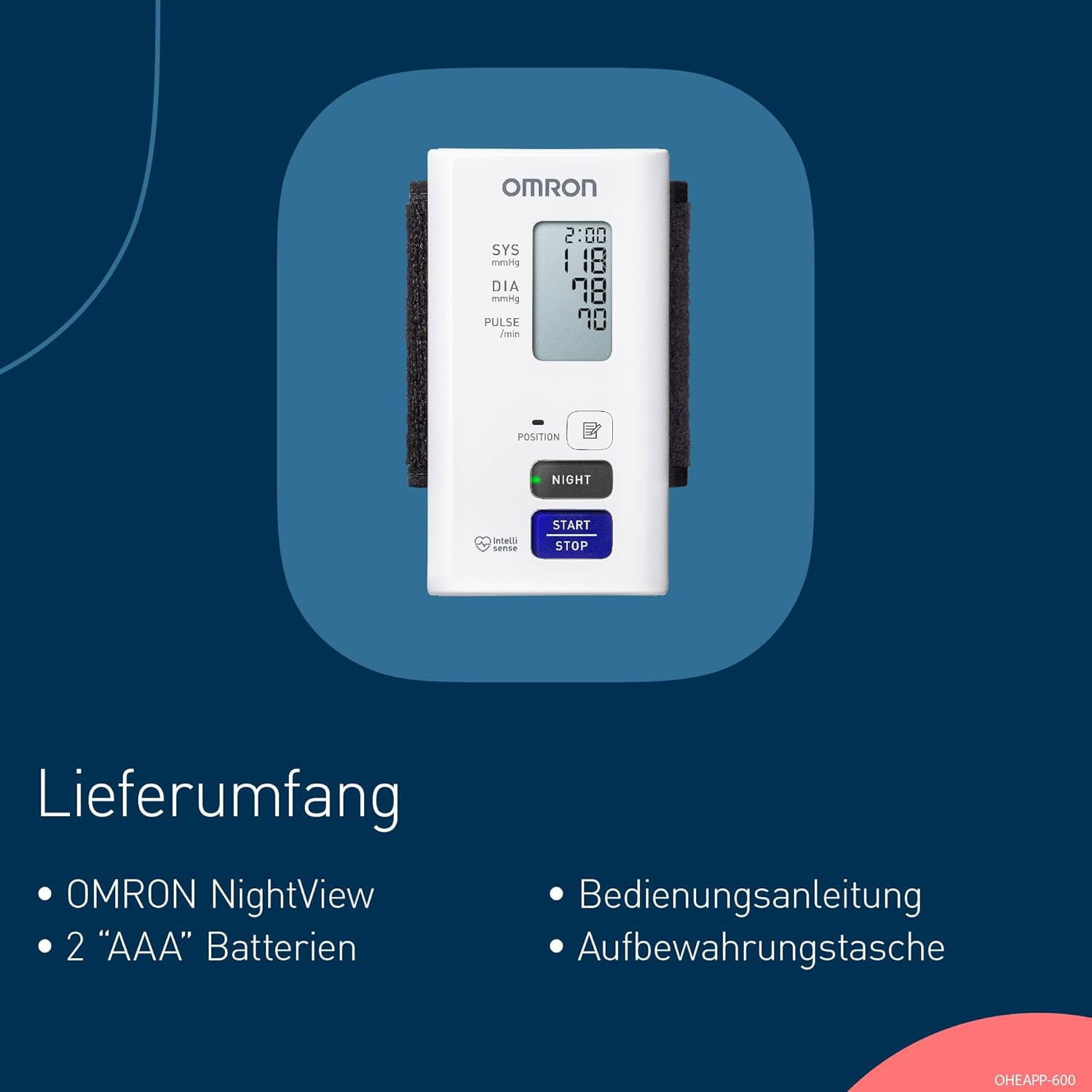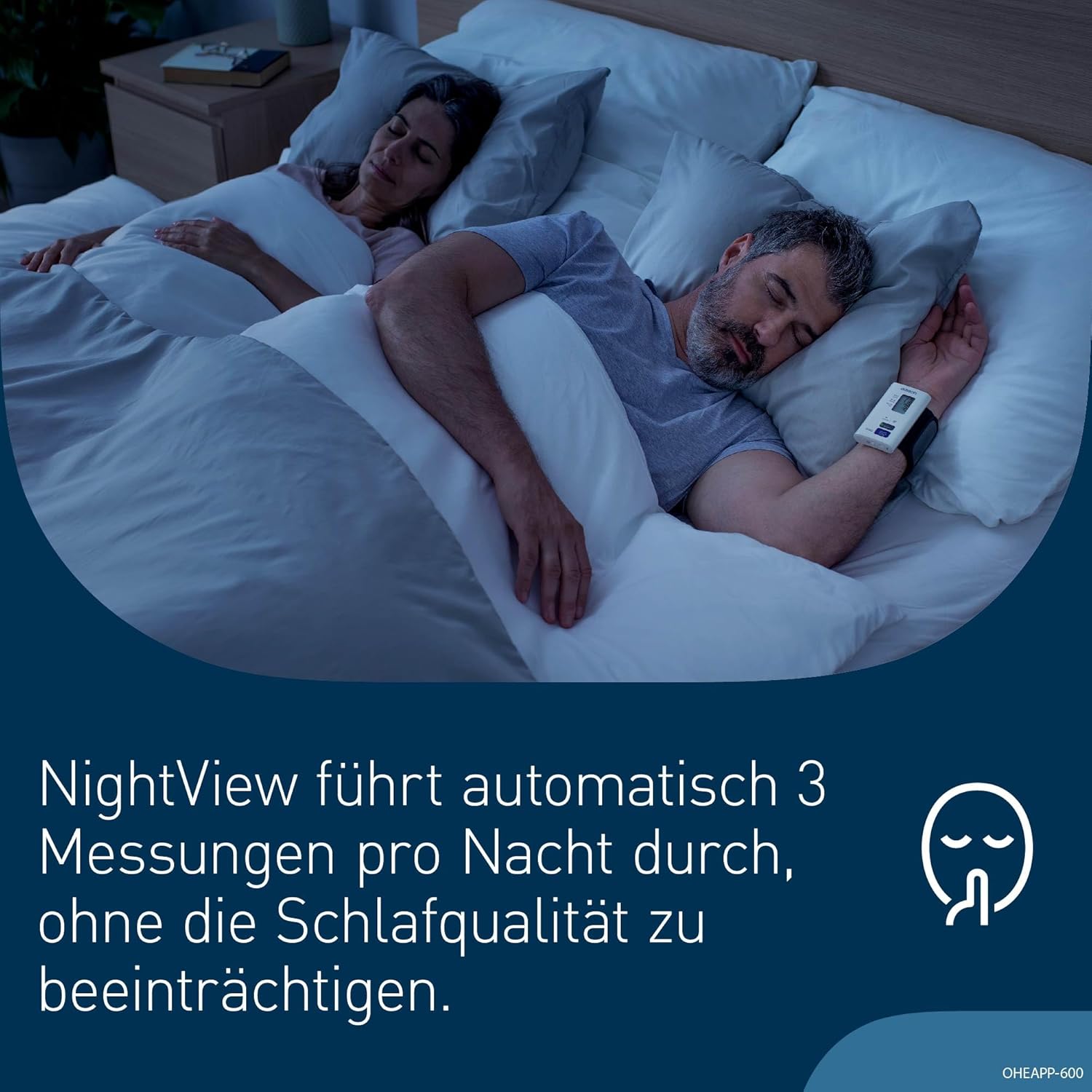 OMRON NightView Handgelenk-Blutdruckmessgerät, klinisch validiert, geräuschlose & komfortable Messung, mit automatischer Messfunktion in der Nacht (nach 4h, um 2 & 4 Uhr), kostenlose Smartphone App | قیمت یورویی 139.99€