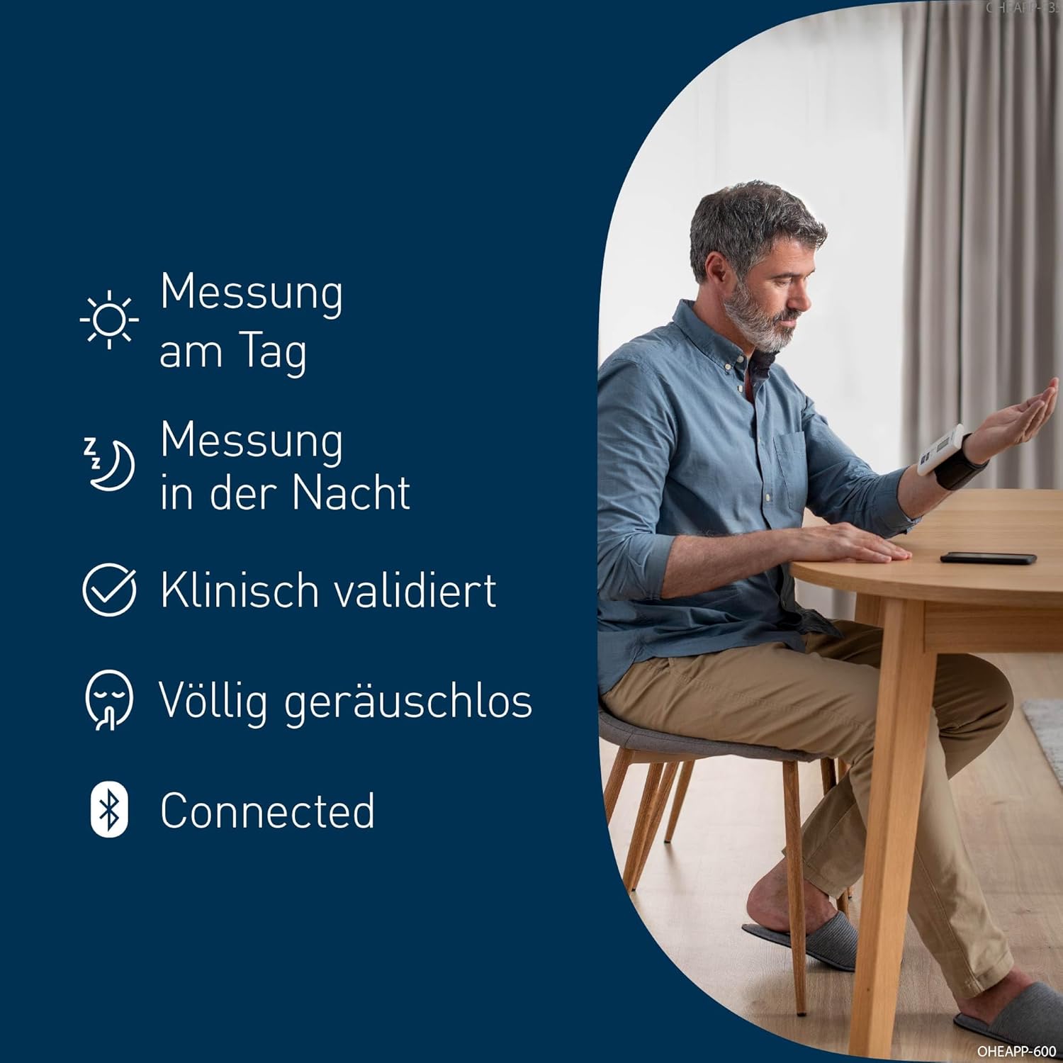 Zur Blutdruckmessung bei Tag und in der Nacht, um sich ein vollständigeres Bild der eigenen Blutdruckwerte zu verschaffen Einfach Handhabung, sanfte und absolut geräuschlose Messung Klinisch validiert zur Messung im Sitzen und im Liegen, auch bei Drehung des Handgelenks während des Schlafes Smarte Blutdrucküberwachung: Das Gerät übermittelt die neuesten Messergebnisse per Bluetooth automatisch an Ihr Smartphone, sodass Sie Ihre Blutdruckwerte in der App OMRON connect jederzeit ablesen können – oder Sie lassen sich die Werte einfach von Alexa vorlesen, ohne das Smartphone zur Hand nehmen zu müssen Lieferumfang: 1 x OMRON NighView Handgelenk-Blutdruckmessgerät Manschette 13.5 - 21.5 cm, Batterien, Aufbewahrungsbox, Gebrauchsanweisung | قیمت یورویی : 139.99€