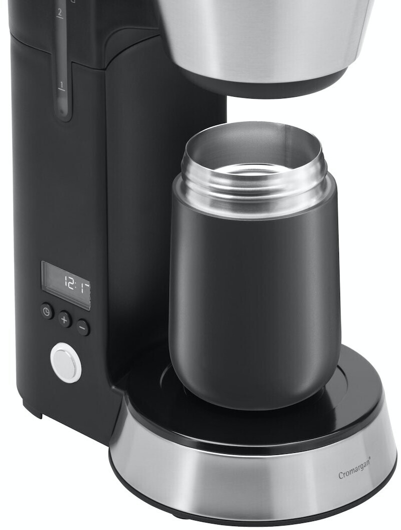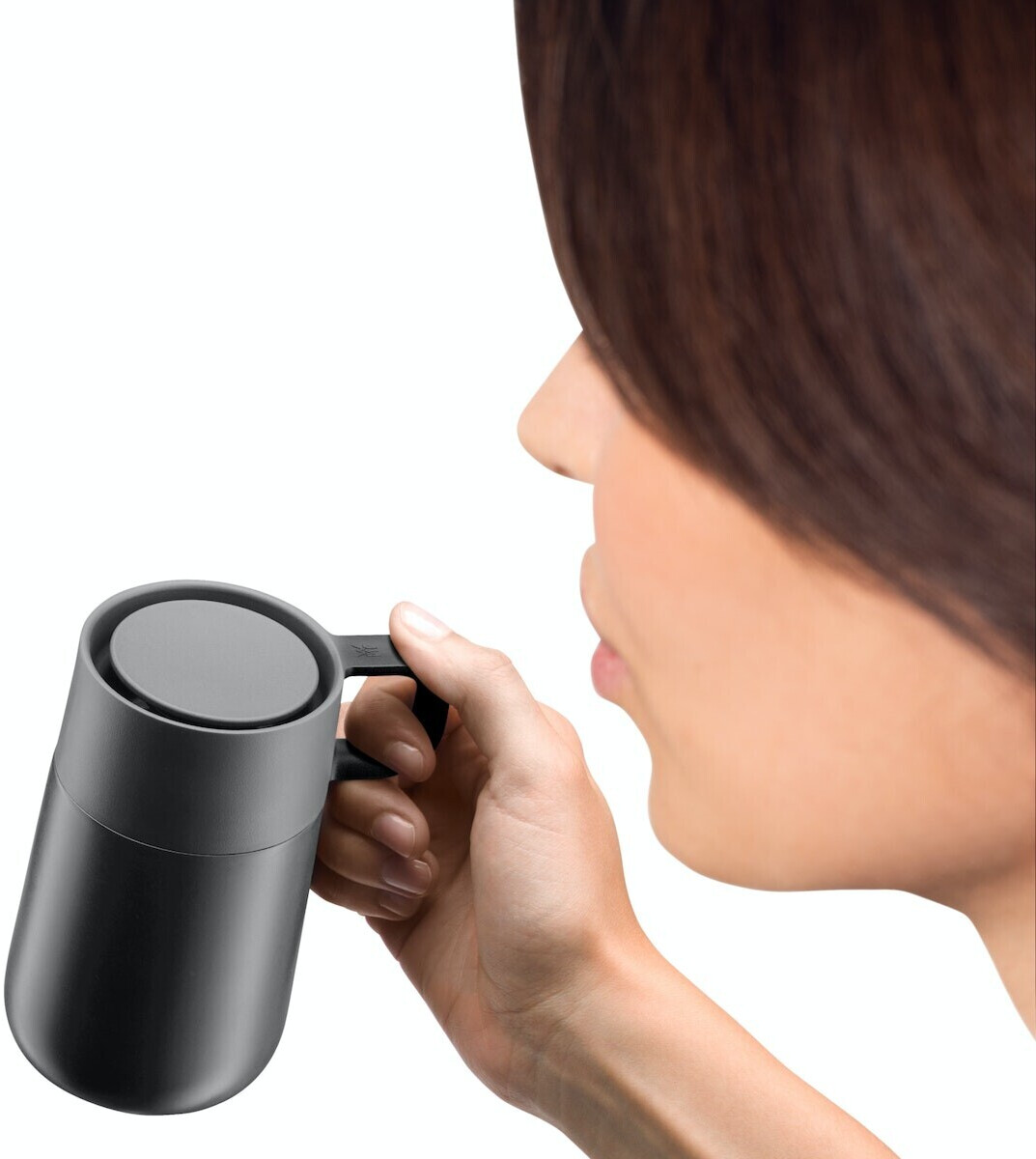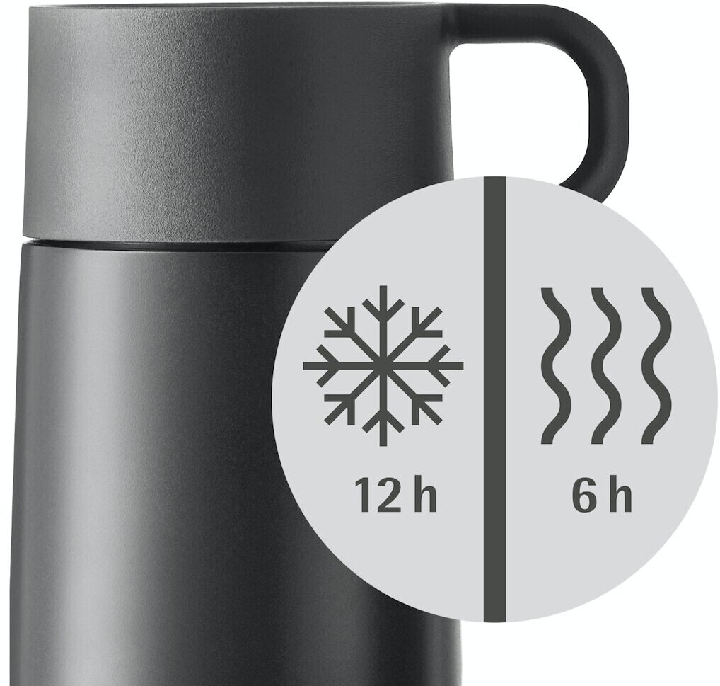 فلاسک شیک و جمعوجور WMF Impulse با رنگ خاص ذغالی و بدنه استیل Cromargan، انتخابی بینقص برای نگهداری نوشیدنیهای گرم و سرد در طول روز است.