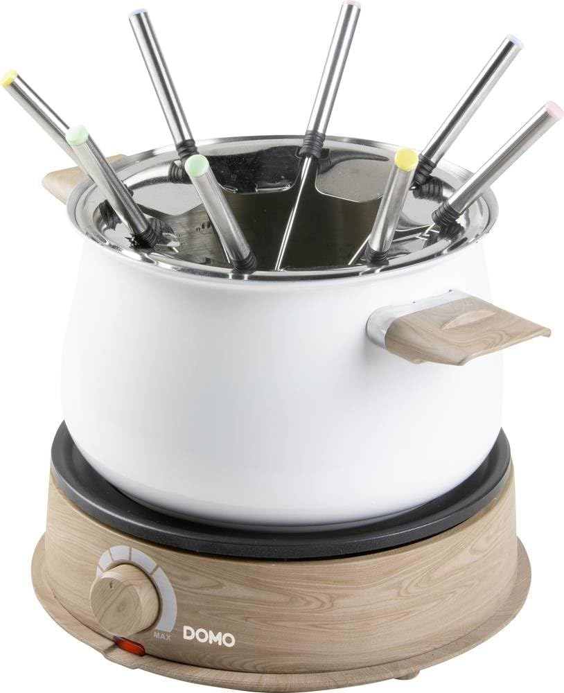 DOMO DO736F Fondue 1500W Kontrollleuchte, 8 Fonduegabeln Holz, Weiß | قیمت یورویی 69.9€