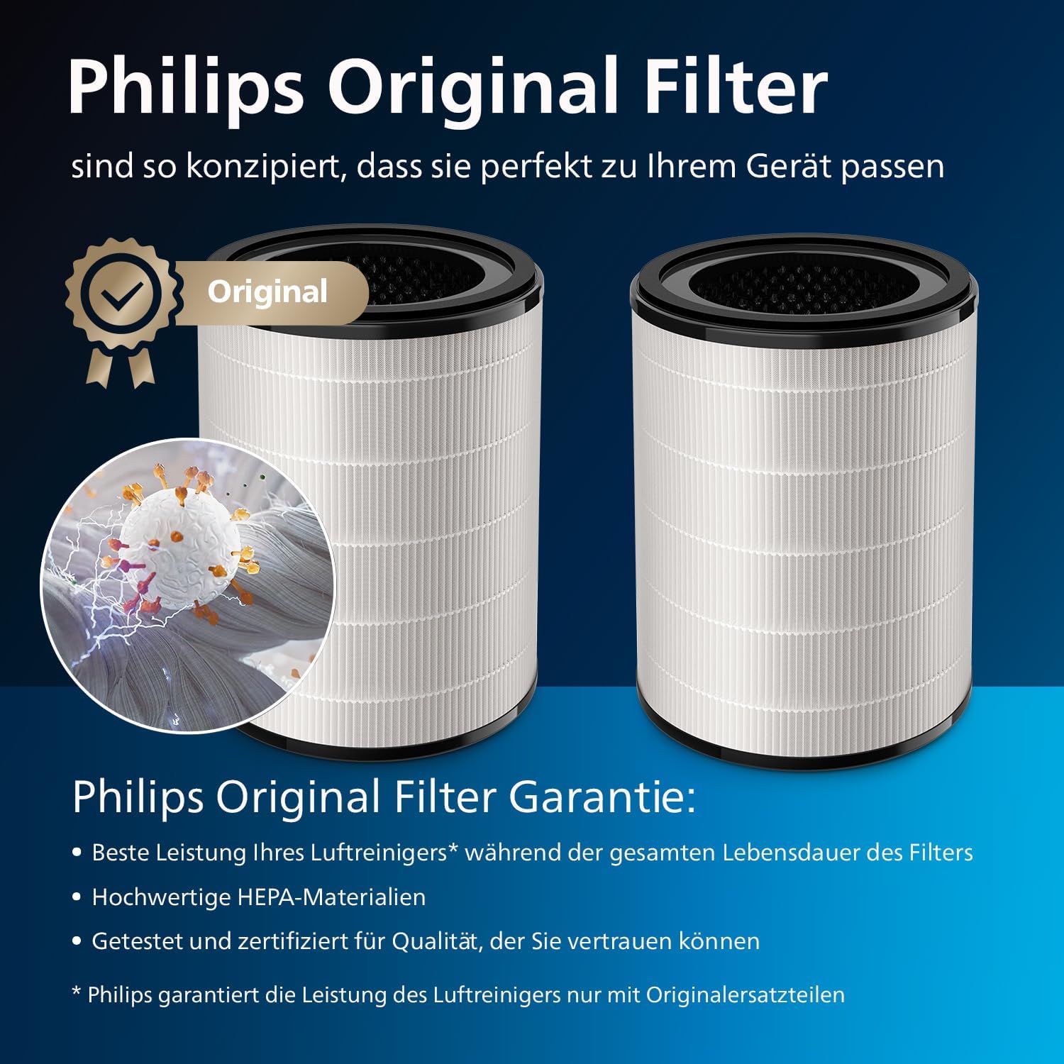 Der Original Philips Filter, um die beste Leistung Ihres Luftreinigers zu gewährleisten. Er wurde zusammen mit dem Gerät selbst entwickelt, um eine perfekte Passform zu gewährleisten, die einen dauerhaft reibungslosen Betrieb garantiert Bis zu 99,9 % Virenentfernung. Der Luftreiniger fängt Aerosole auf, einschließlich solcher, die Atemwegsviren enthalten können. Unabhängig getestet, um bis zu 99,9 % der Viren und Aerosole aus der Luft zu entfernen¹ Der zylindrische 3-in-1-Filter kombiniert alle drei Filterschichten, die für eine optimale Filterleistung Ihres Geräts erforderlich sind. Aktivkohle-, HEPA- und Vorfilter sind die optimale Kombination, um Schadstoffe, Pollen, Viren, Allergene und Bakterien zu entfernen Die NanoProtect HEPA-Technologie fängt nicht nur Schadstoffe ein, sondern nutzt eine spezielle elektrostatische Ladung, um sie anzuziehen. Dadurch reinigt sie die Luft schneller als der medizinisch genutzte HEPA H13-Filter² Der integrierte 3-in-1-Filter von Philips bietet konstanten Schutz und garantiert eine optimale Filterung für bis zu 36 Monate³ | قیمت یورویی : 59.99€