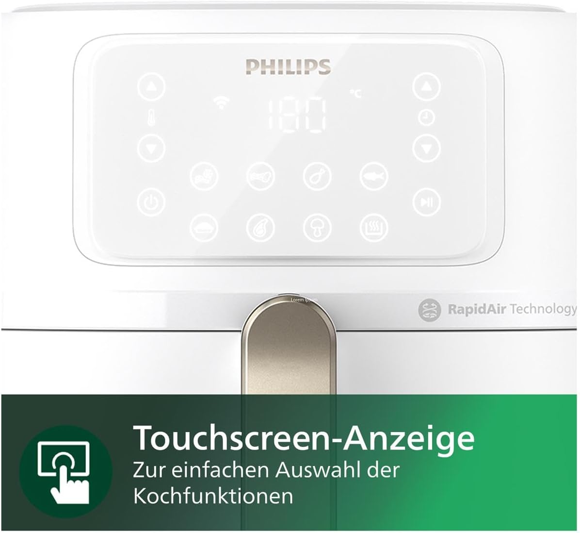 Philips Airfryer 5000-Serie XXL, 7,2L (1,4Kg) - 6 Portionen, 16-in-1 Airfryer, Wifi verbunden, 90% weniger Fett mit Rapid Air Technologie, HomeID App. Weiß (HD9285/00) | قیمت یورویی 144€