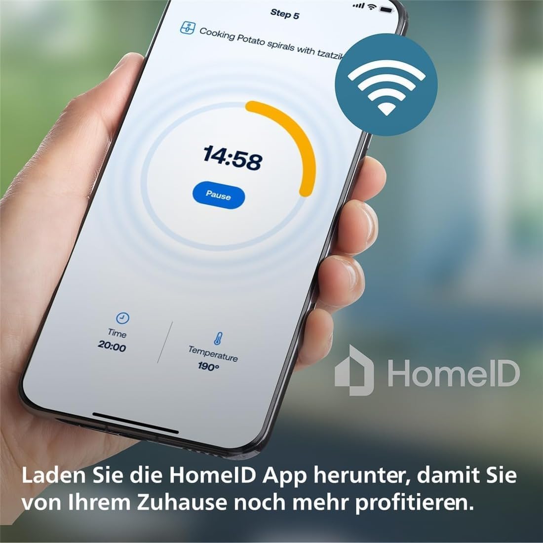 Rapid CombiAir-Technologie: Mit hohem, niedrigem und dynamischem Luftstrom, um sicherzustellen, dass Ihre Gerichte genau so zubereitet werden, wie Sie es sich wünschen Auto-Cook-Programme: Wählen Sie Ihre Zutaten, bestimmen Sie die Menge und lassen Sie den Airfryer Combi den Rest erledigen* Energie sparen: Kochen Sie bis zu 50 % schneller und sparen Sie bis zu 70 % Energie, wenn Sie Ihren Philips Airfryer anstelle Ihres Backofens nutzen** Die HomeID-App: Hilft Ihnen, Ihre Mahlzeiten neu zu gestalten, mit köstlichen und gesunden Rezepten aus aller Welt, mit Schritt-für-Schritt-Anleitung und den genauen Einstellungen, die Sie benötigen 22-in-1-Kochfunktionen: Braten, Backen, Grillen, Dehydrieren, Schmoren und viele mehr XXL-Kochkapazität: Kochen Sie für Freunde oder Familie mit einem Korb mit 2,0 kg Fassungsvermögen und einem 8,3-Liter-Topf für bis zu 7 Portionen | قیمت یورویی : 239.9€